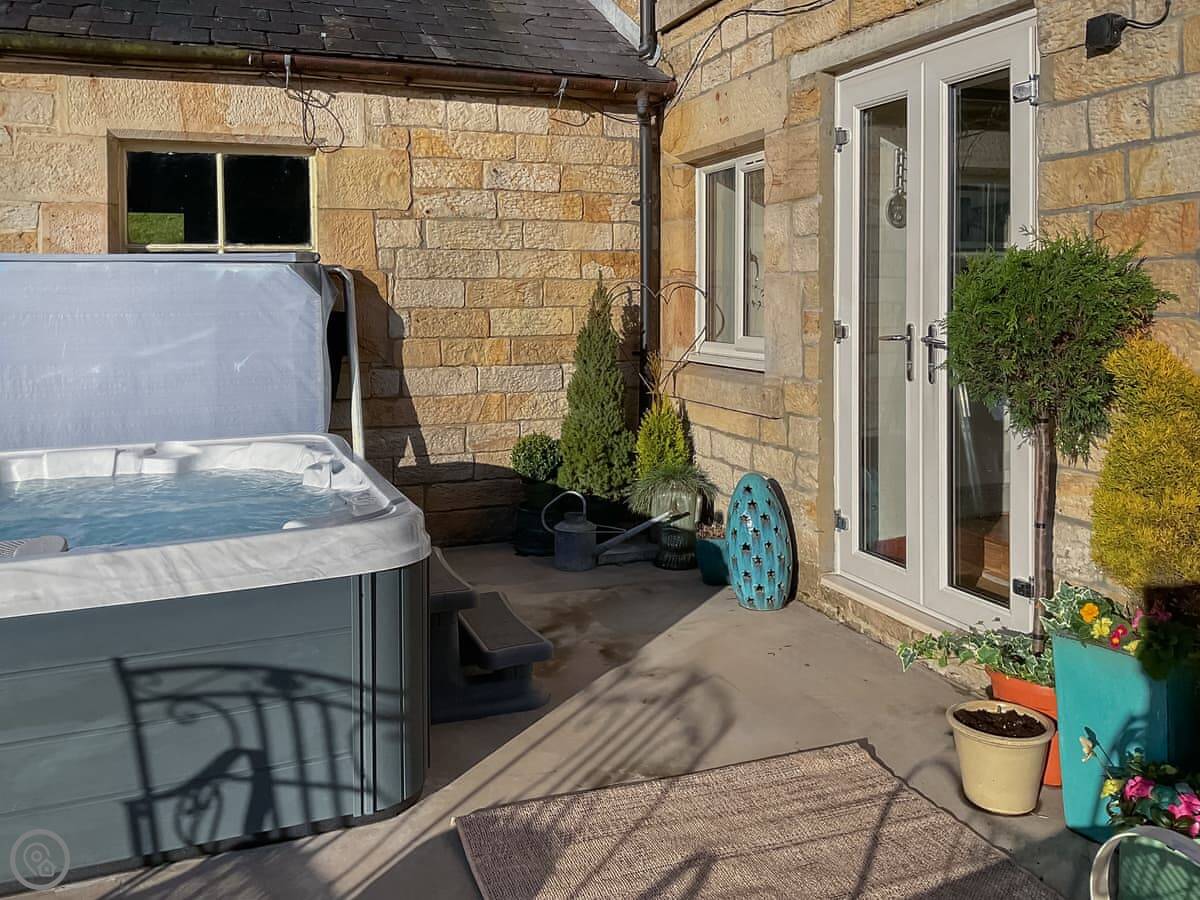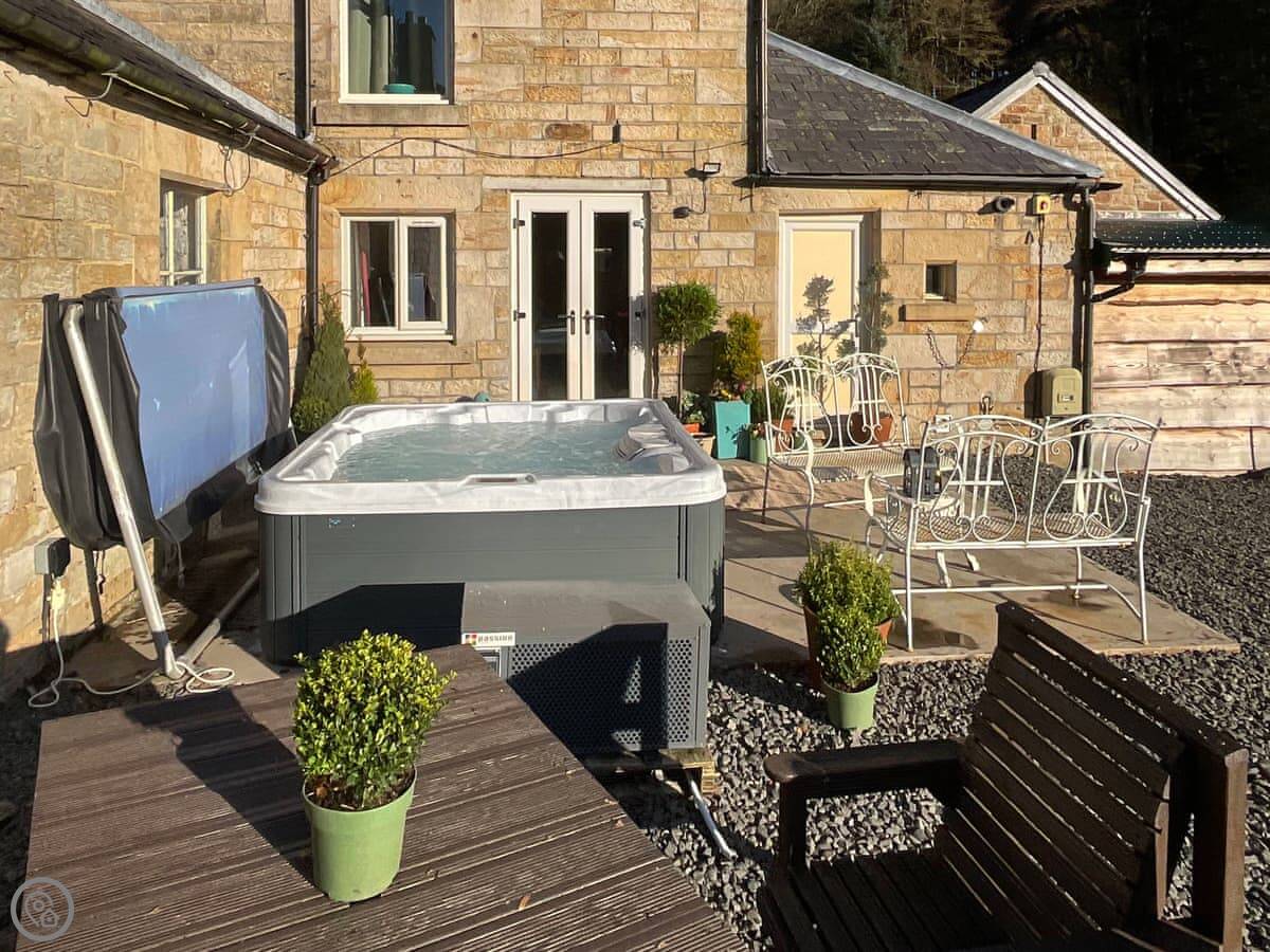 It's a detached cottage, so no one is attached. The garden is enclosed. There's parking for two cars on the drive. We've got a hot tub out there, which is private for you.