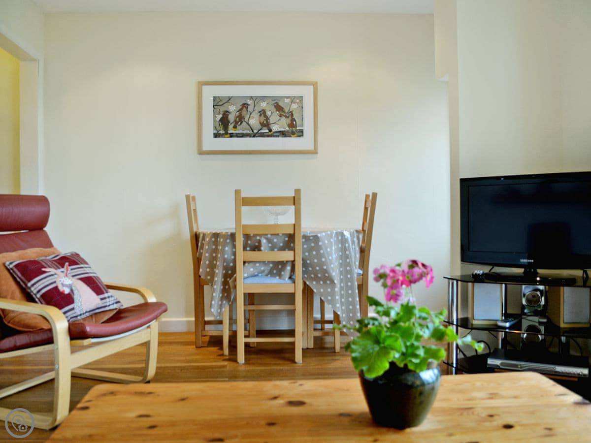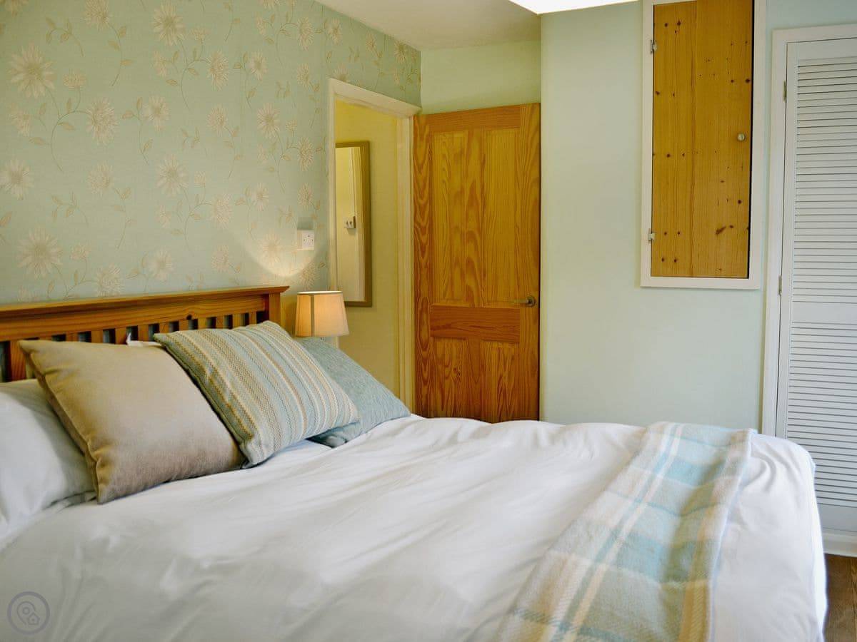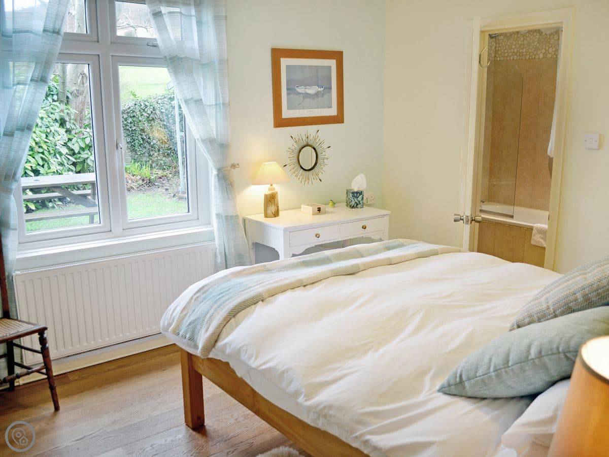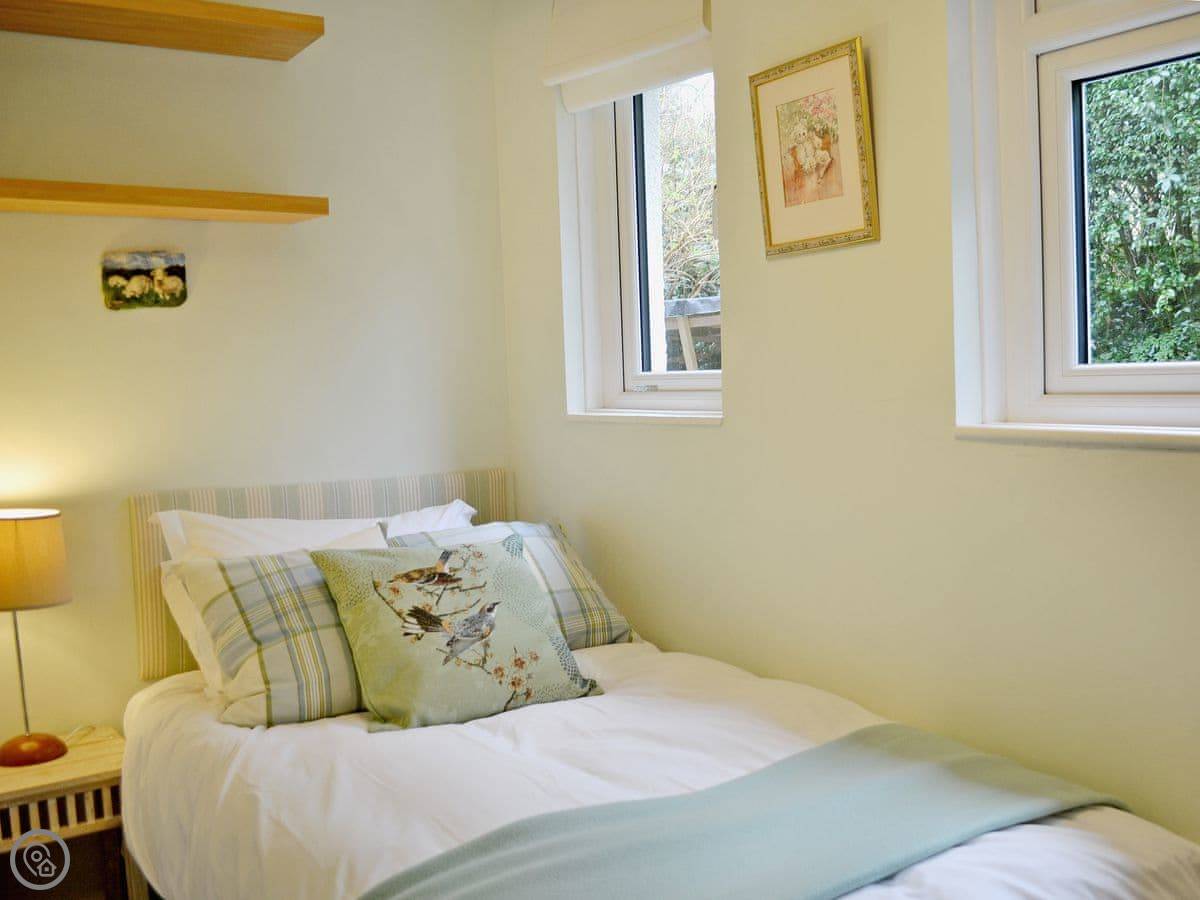 It sleeps three. Two bedrooms, one bathroom. It has a 4 Star rating. Everything is on the ground floor, which is handy. The main bedroom has an en-suite shower room. There's a woodburning stove for cooler evenings.