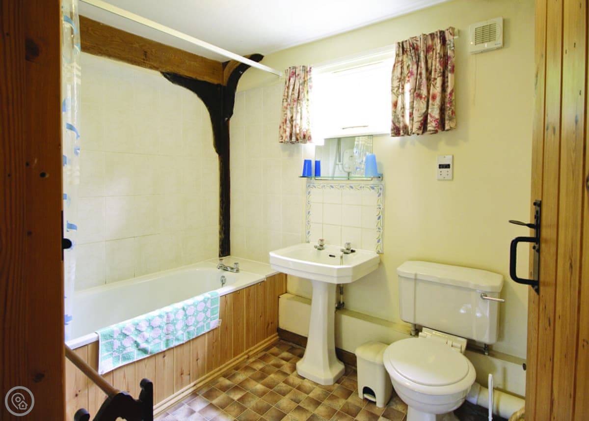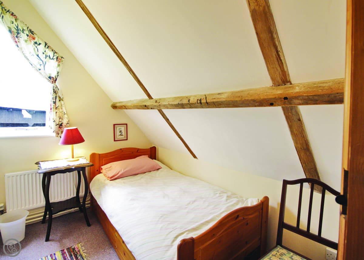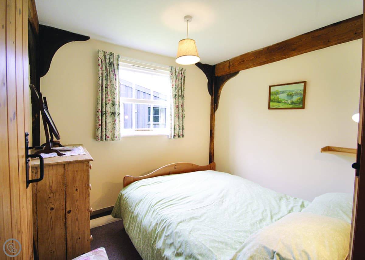It sleeps six in four bedrooms. There's one bathroom. It's got a 3 Star rating, so it's comfortable and clean without being high-end. The stairs are a normal cottage staircase, not a spiral or anything.