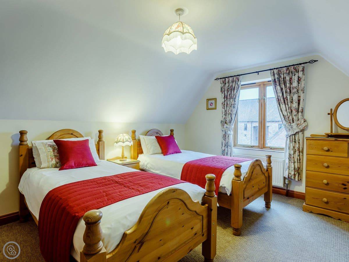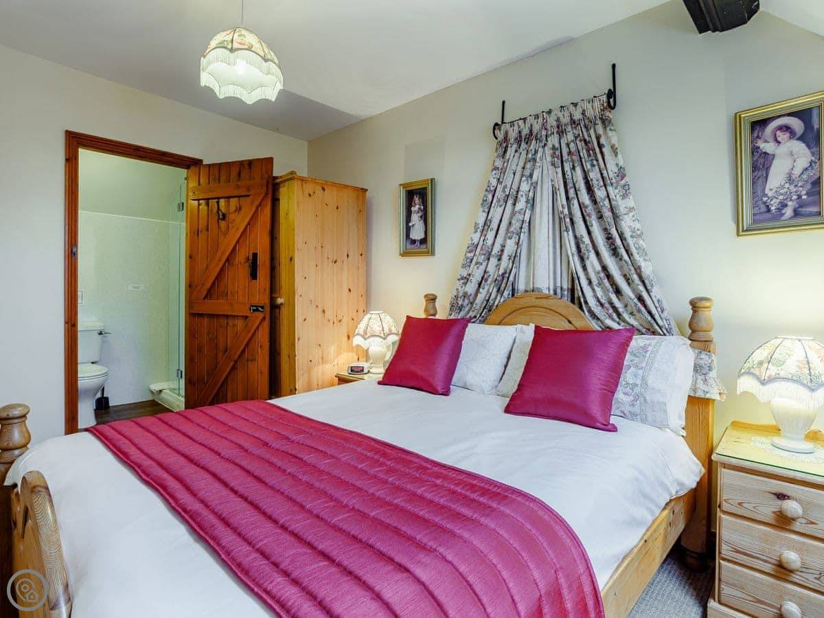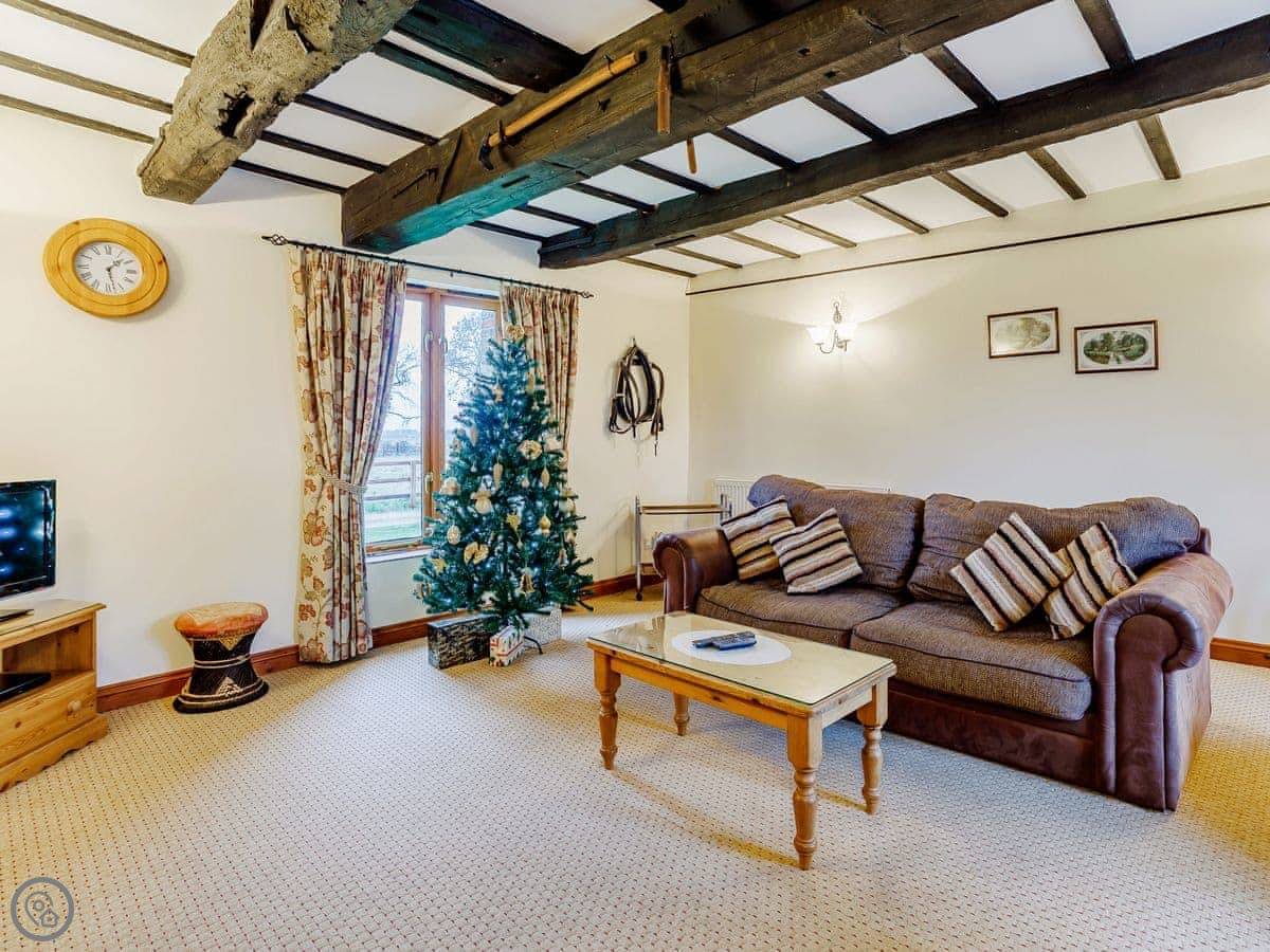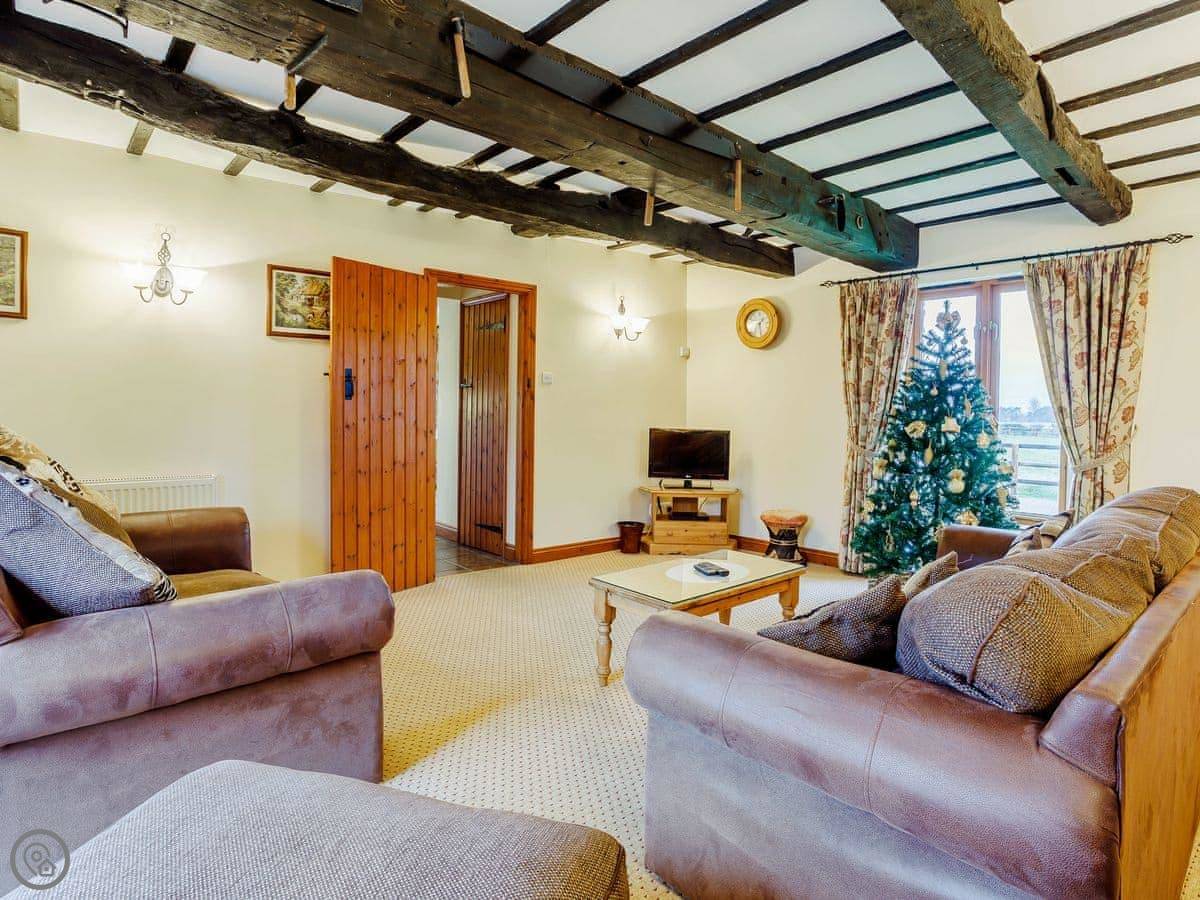 The barn sleeps five. Three bedrooms, two bathrooms. The rating is 4 Star, so it's comfortable and well looked after. It's a conversion, so there are beams.