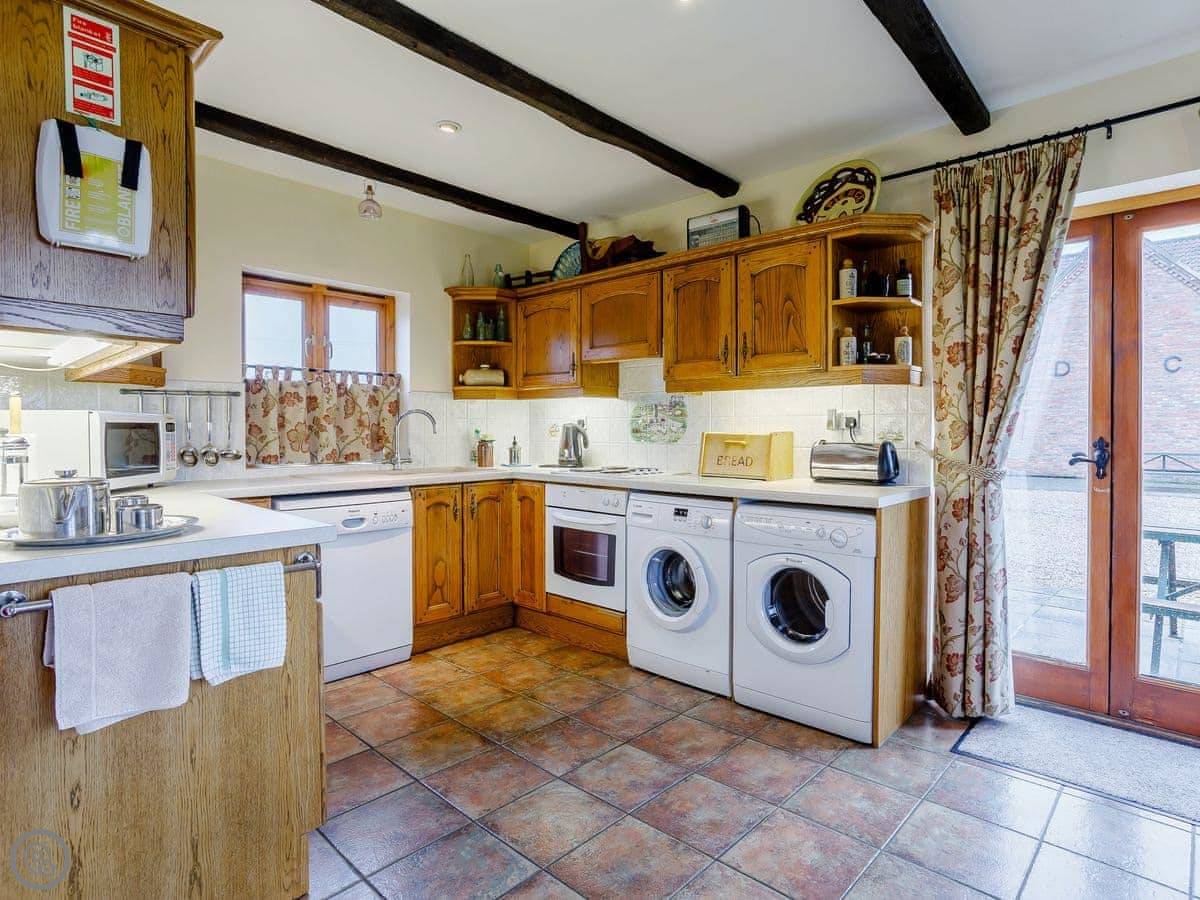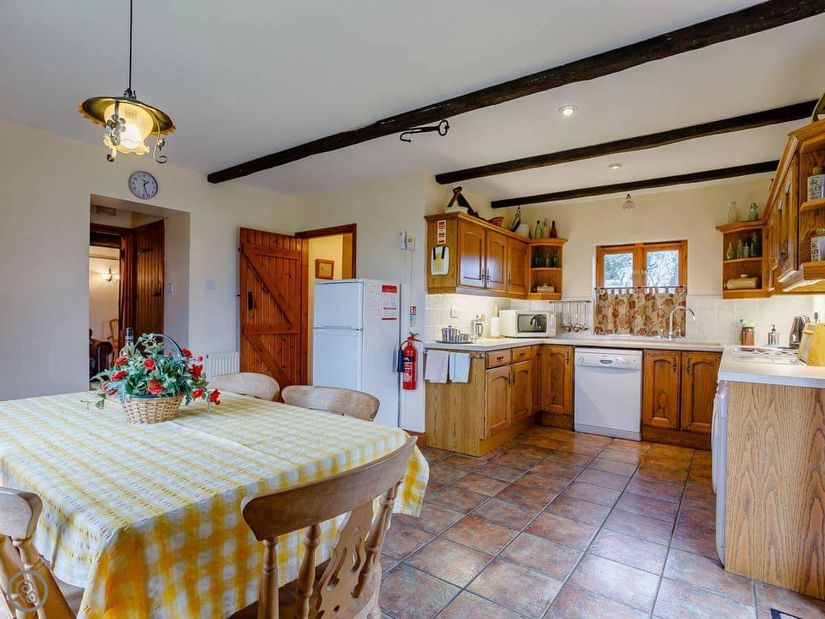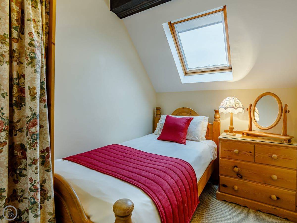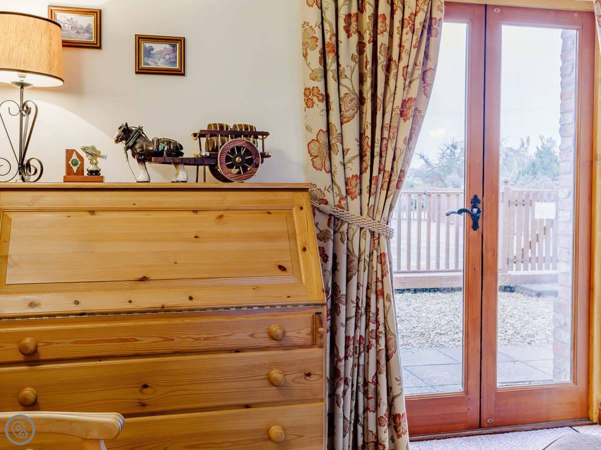 The barn sleeps five. Three bedrooms, two bathrooms. The rating is 4 Star, so it's comfortable and well looked after. It's a conversion, so there are beams.