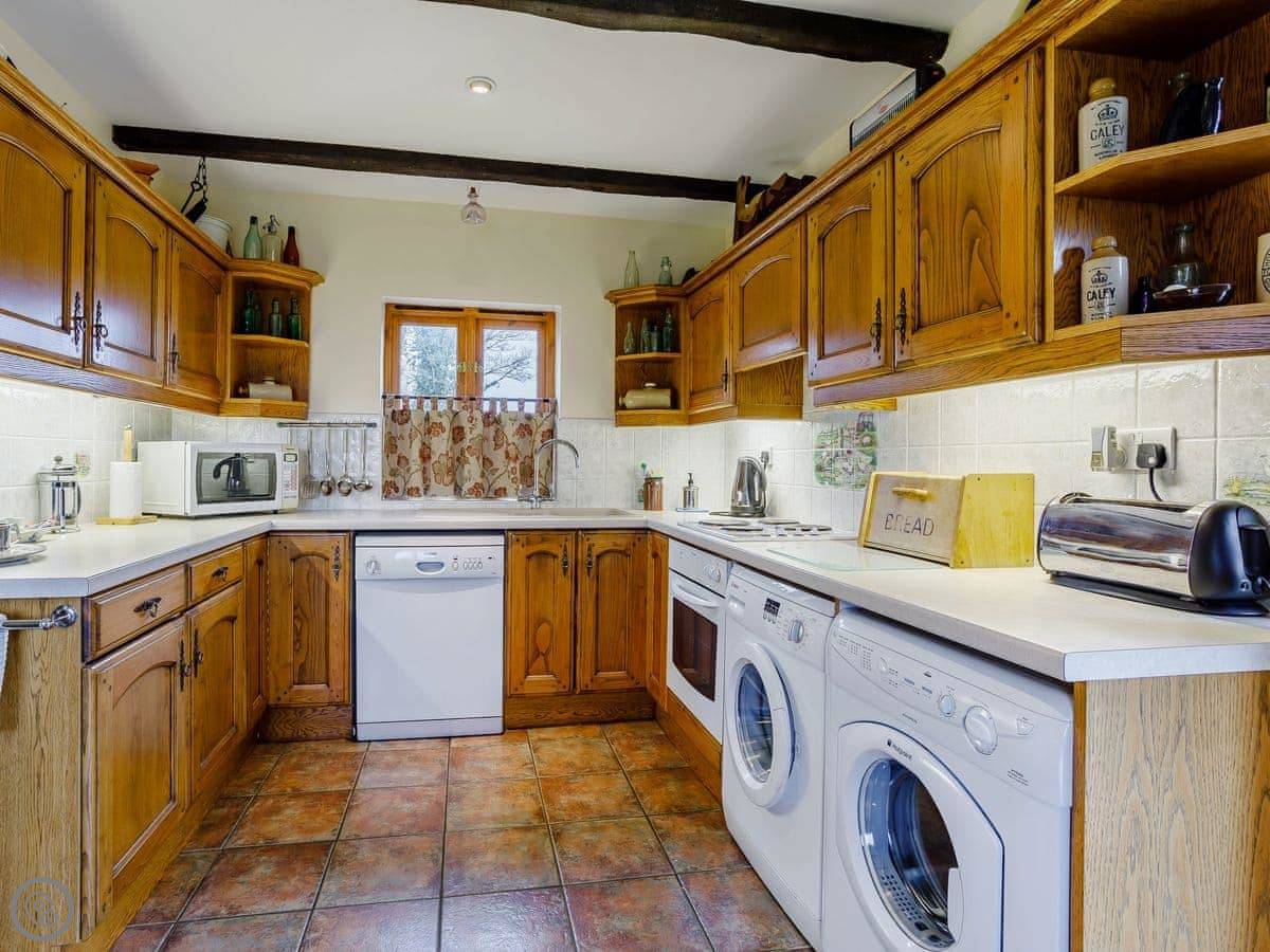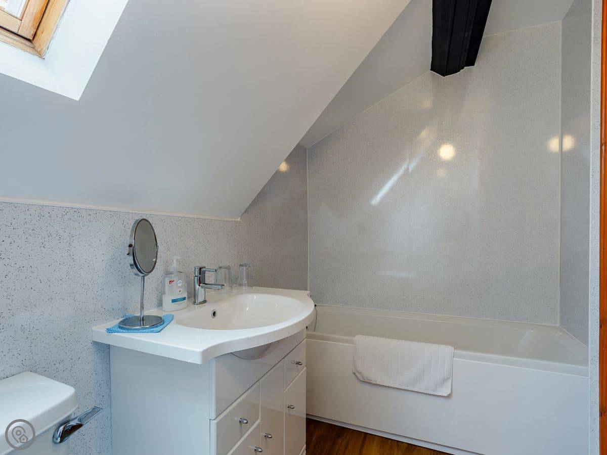 In terms of facilities, it's got a washing machine, dishwasher, WiFi, and parking. Bedding and towels are included. We can provide a cot and highchair if you need them. There's a stairgate at the top. No pets, I'm afraid.