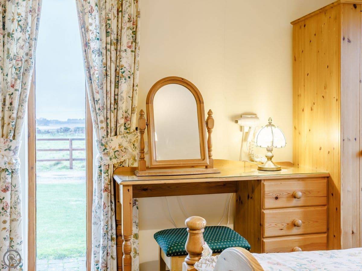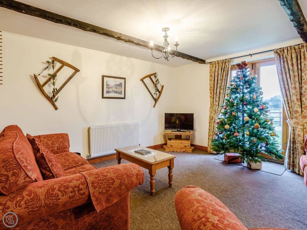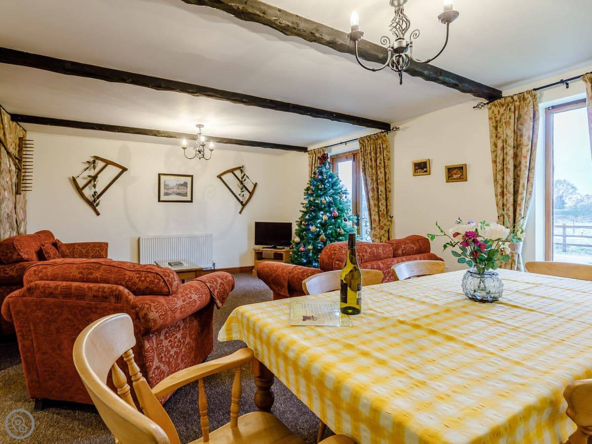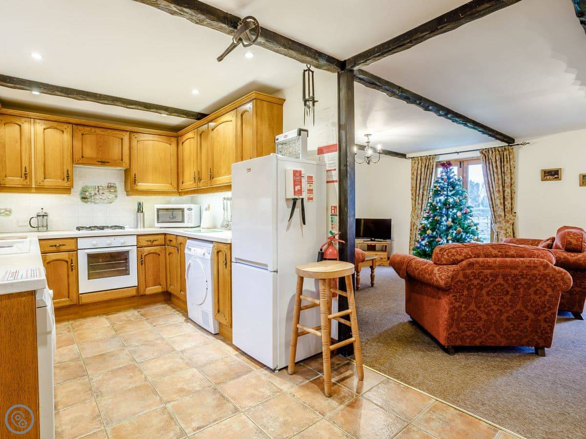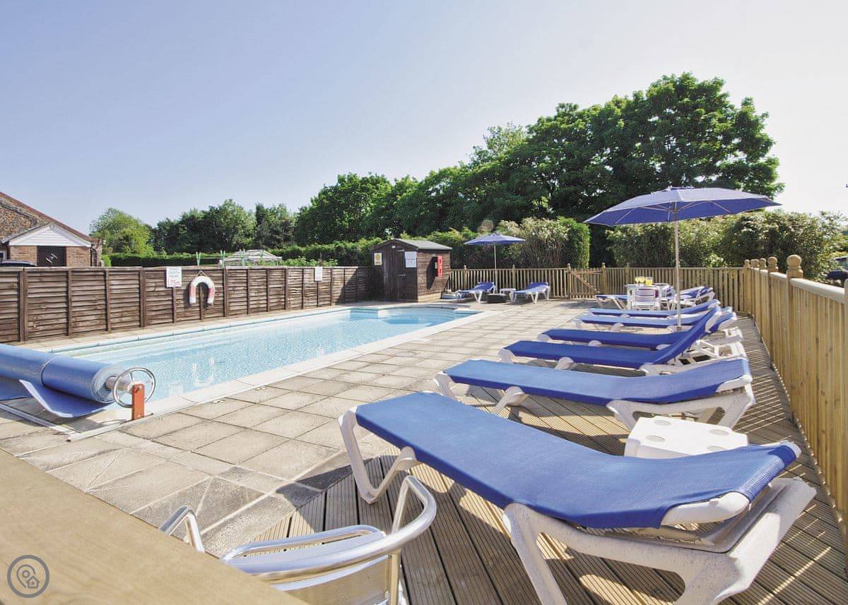 Outside, you have your own patio area with a table and a BBQ. The shared facilities are the main thing here. There's a heated outdoor swimming pool open in summer, a games room, and a sauna and hot tub. There's also a kids play area. You're welcome to walk around the farm grounds and there's coarse fishing on the farm lakes.