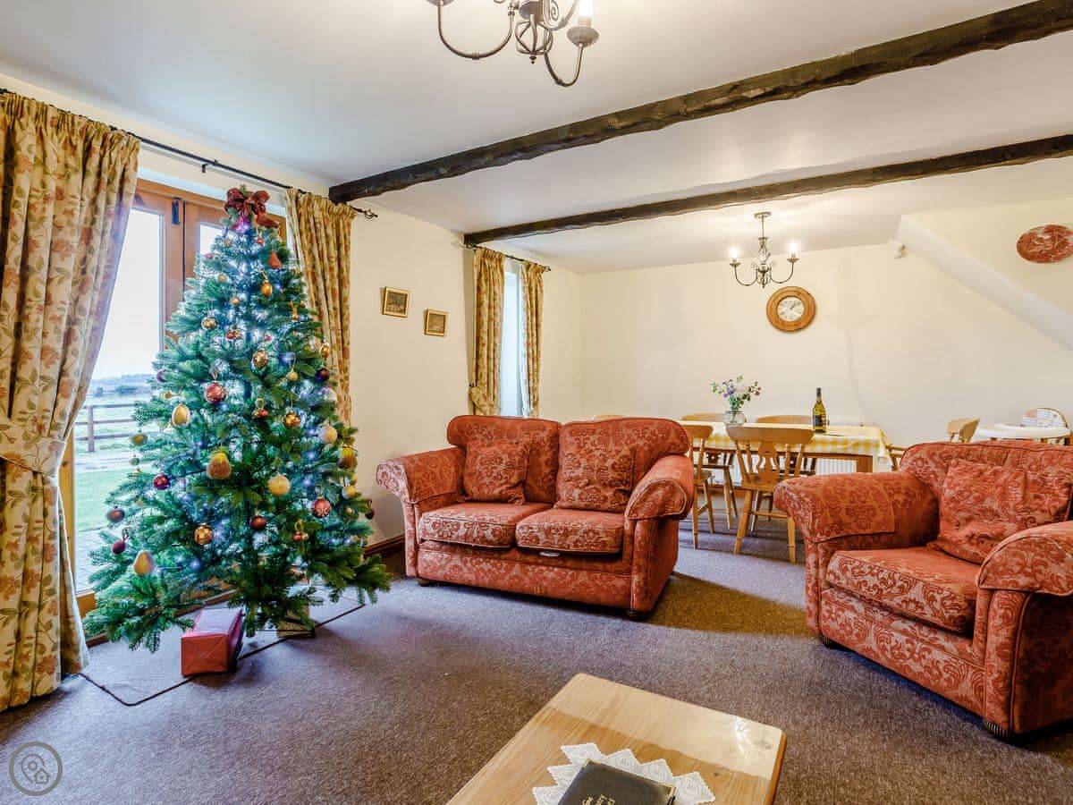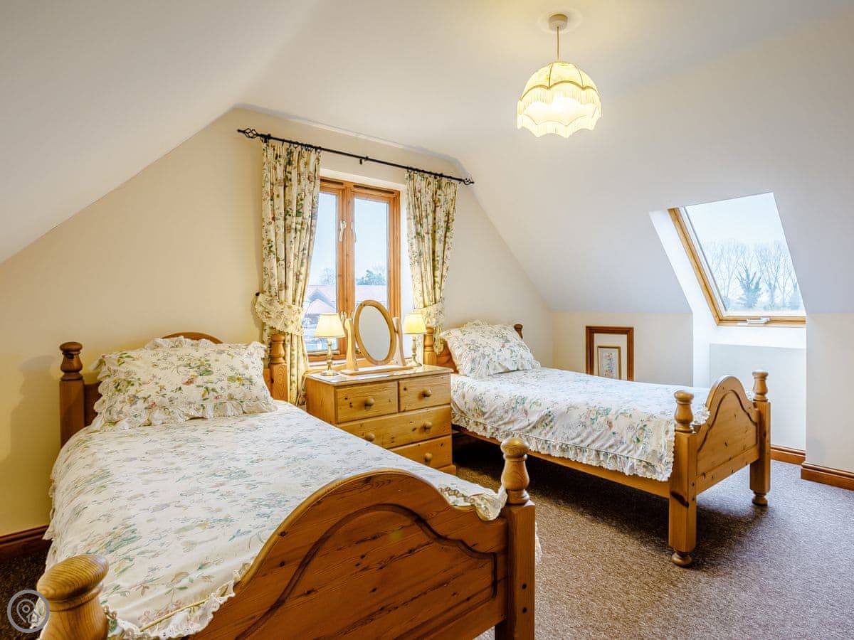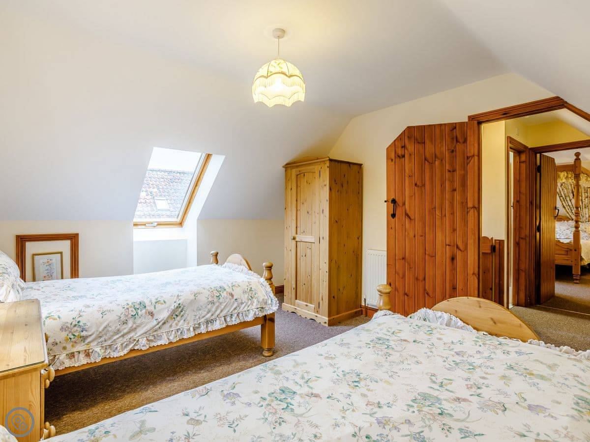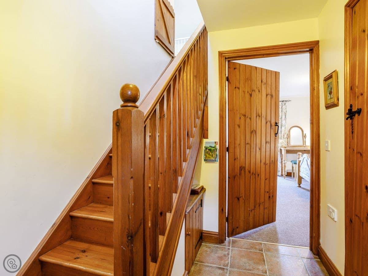 It sleeps six people in three bedrooms. There are two bathrooms, one is a wet room on the ground floor. It has a 4 Star rating. The conversion kept a lot of the original beams and features, so the ceilings are high but the doorways are normal height. The floors are tile and wood.