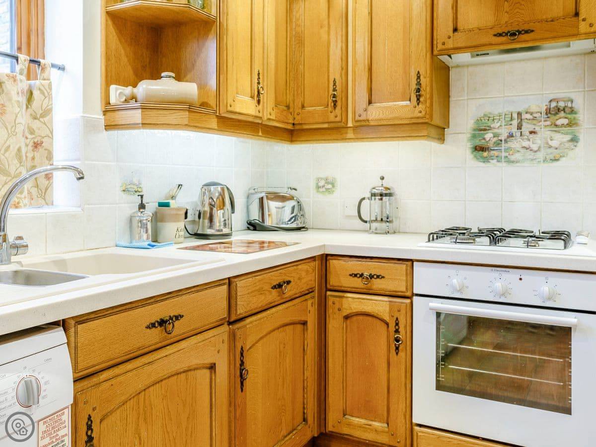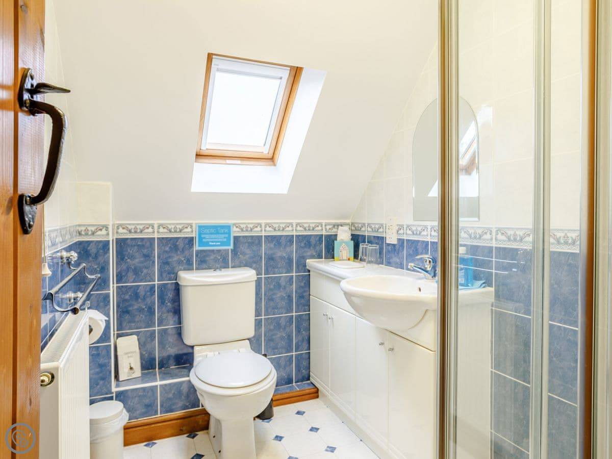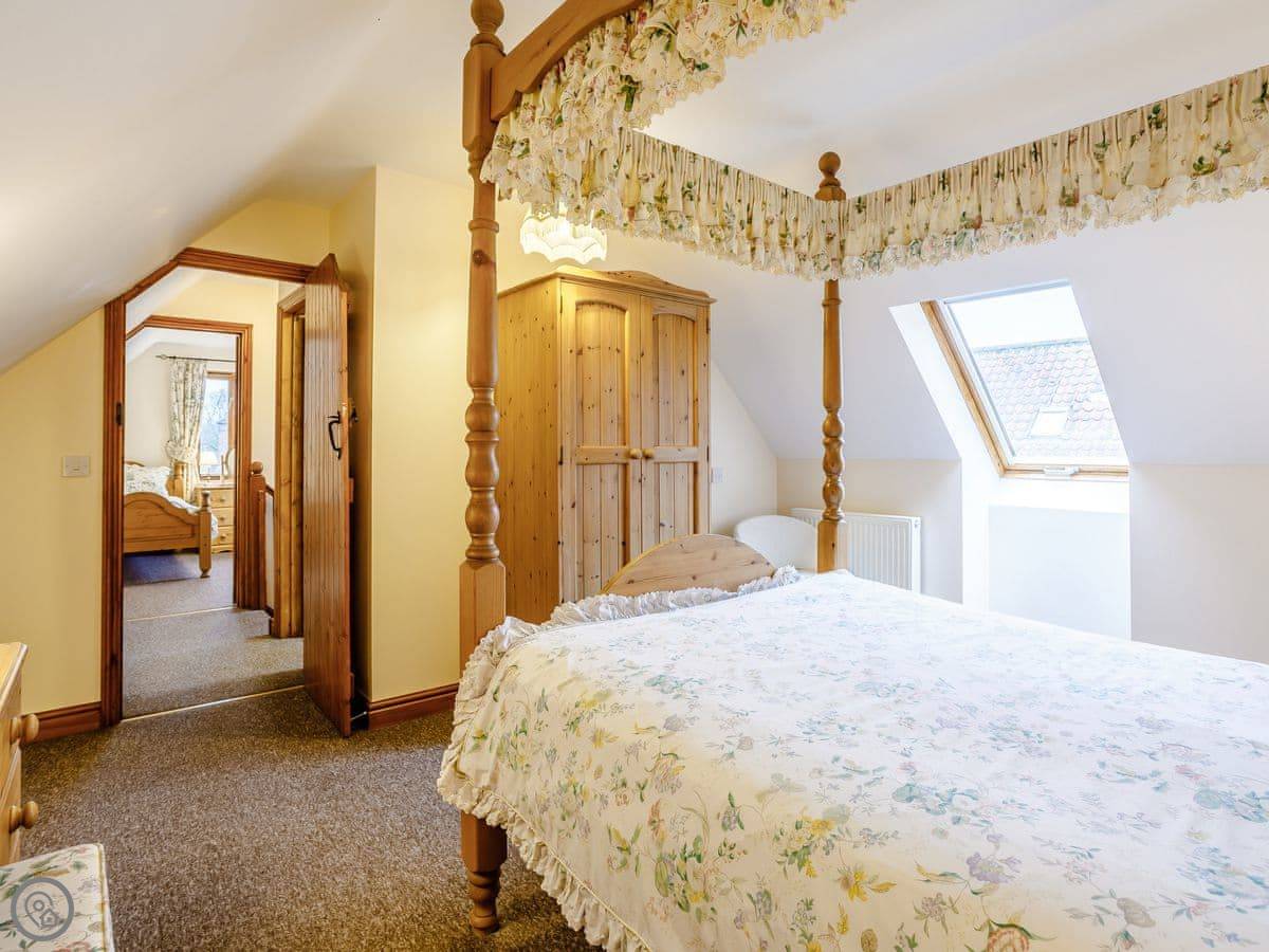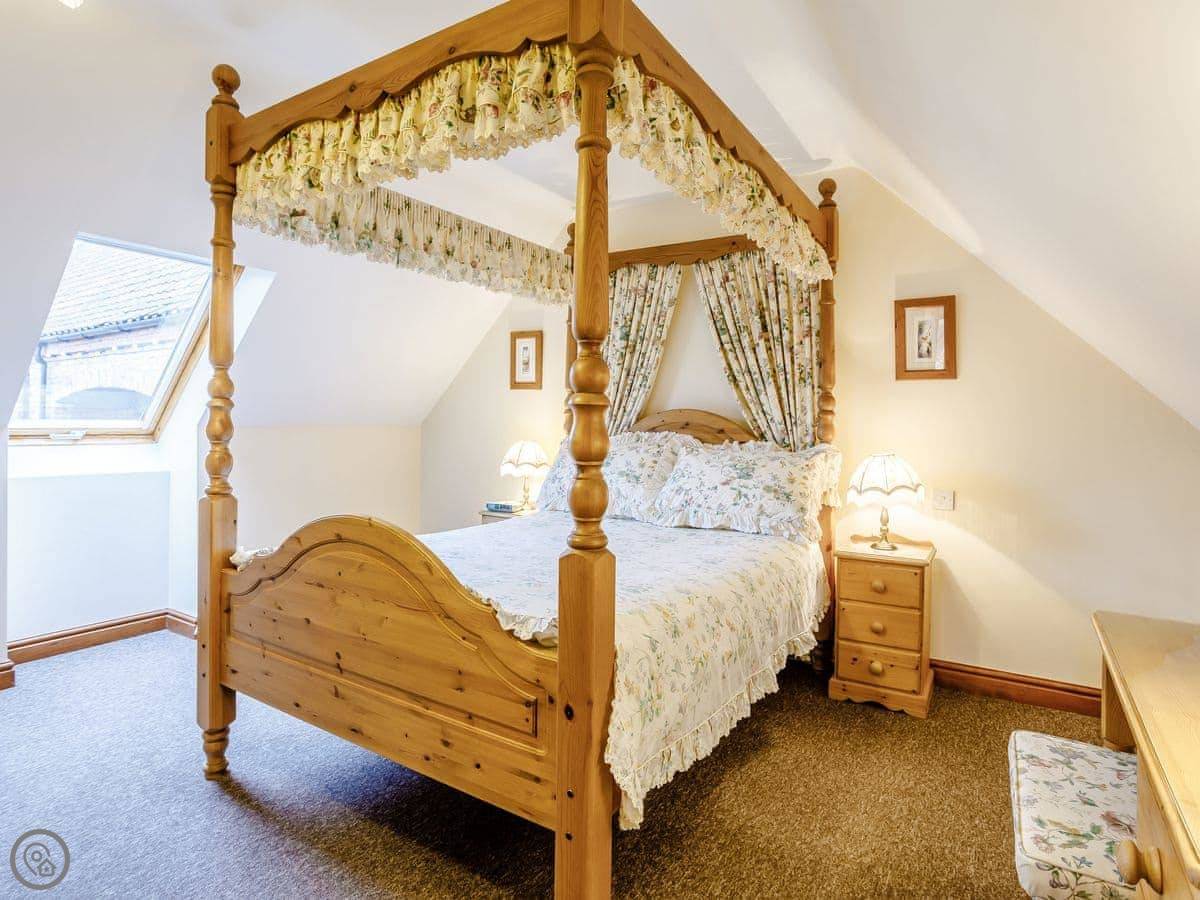 It sleeps six people in three bedrooms. There are two bathrooms, one is a wet room on the ground floor. It has a 4 Star rating. The conversion kept a lot of the original beams and features, so the ceilings are high but the doorways are normal height. The floors are tile and wood.