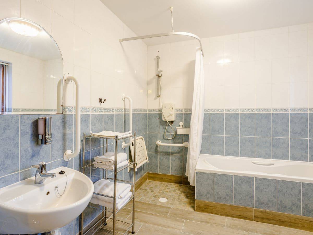 Facilities included: all bedding and towels, WiFi, a washing machine, dishwasher, cot and highchair. There's on-site parking. The property is wheelchair accessible, with grab rails, a seat in the shower, and low worktops in the kitchen. No pets.