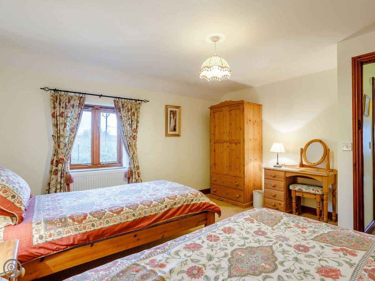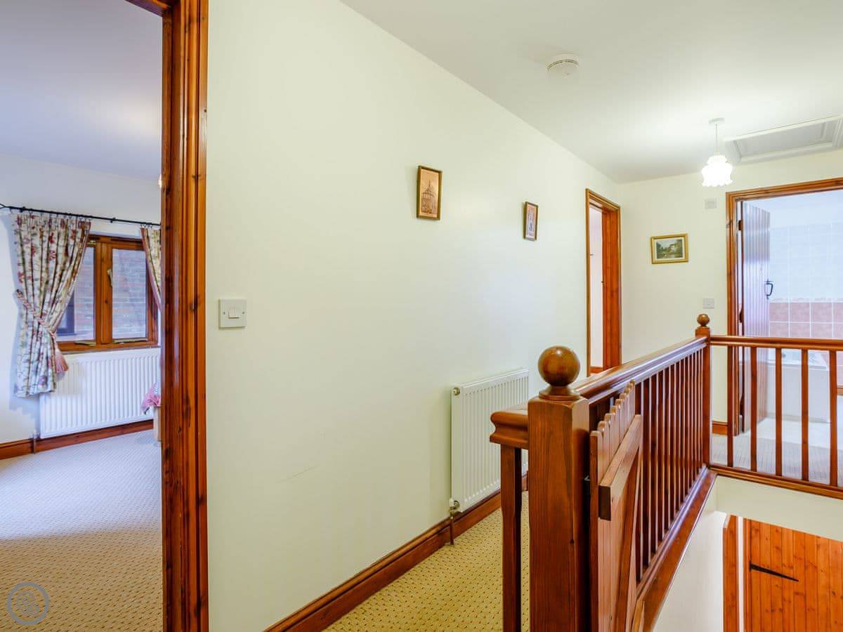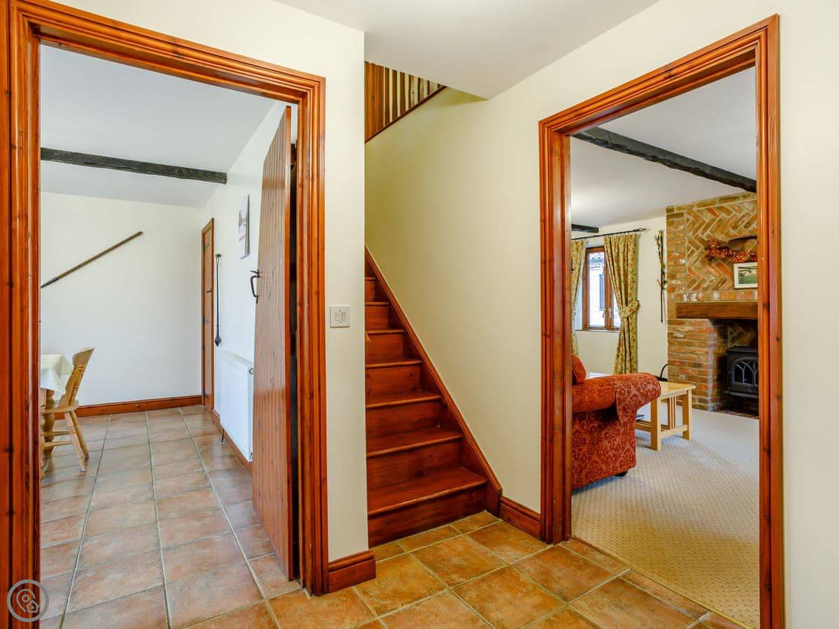 The barn sleeps six. Three bedrooms, two bathrooms. It's got a 4 Star rating, so it's comfortable and well equipped. It's beamed inside, which looks nice but means you have to mind your head in a couple of places.