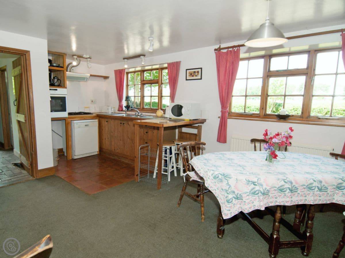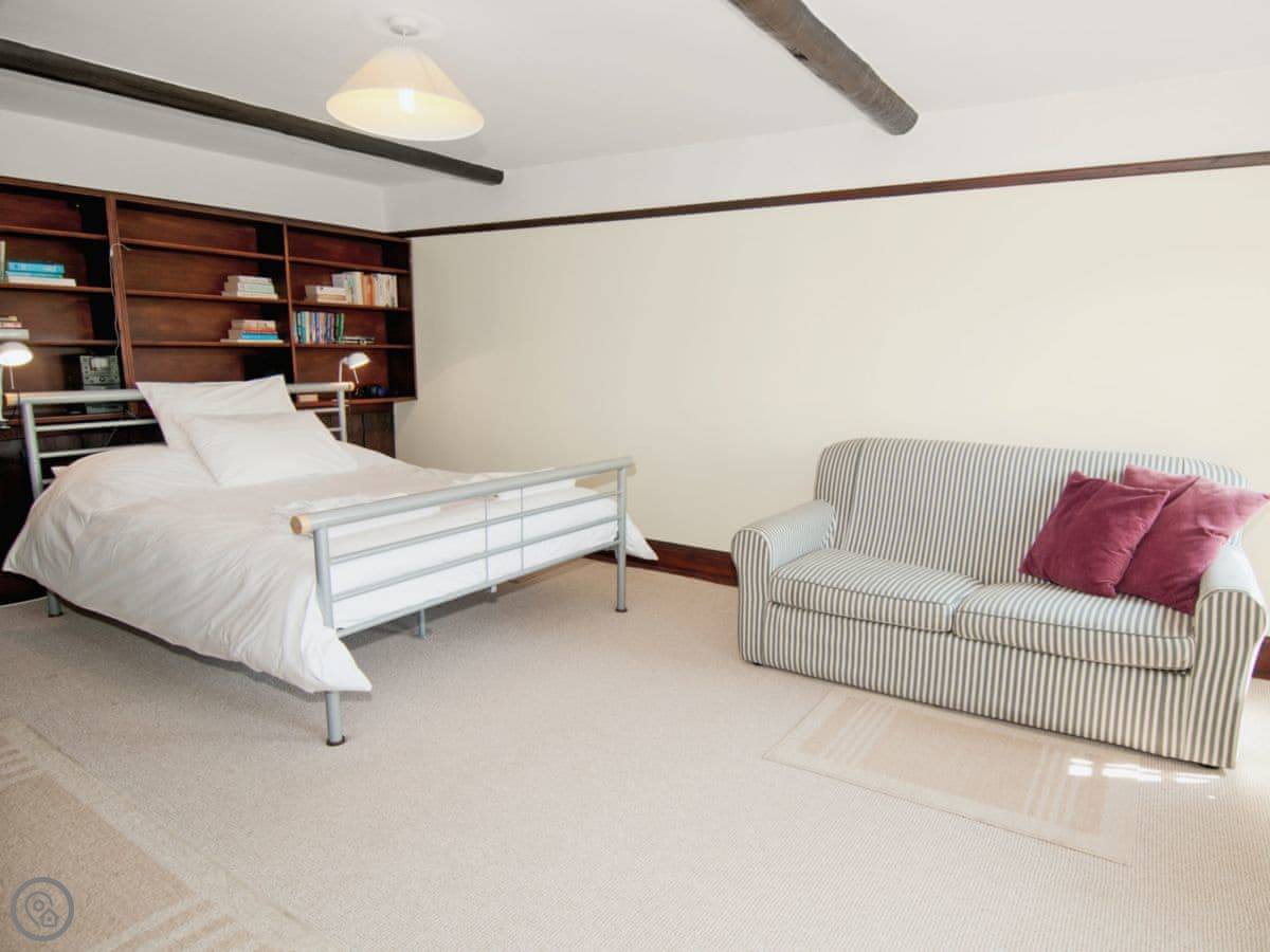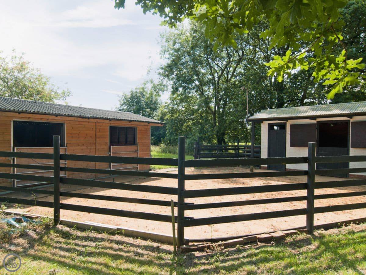 The garden is enclosed, which is useful. It's got a patio and a barbecue. You can bring up to three dogs. There's also stabling for four horses if you need it, and space to store bikes.