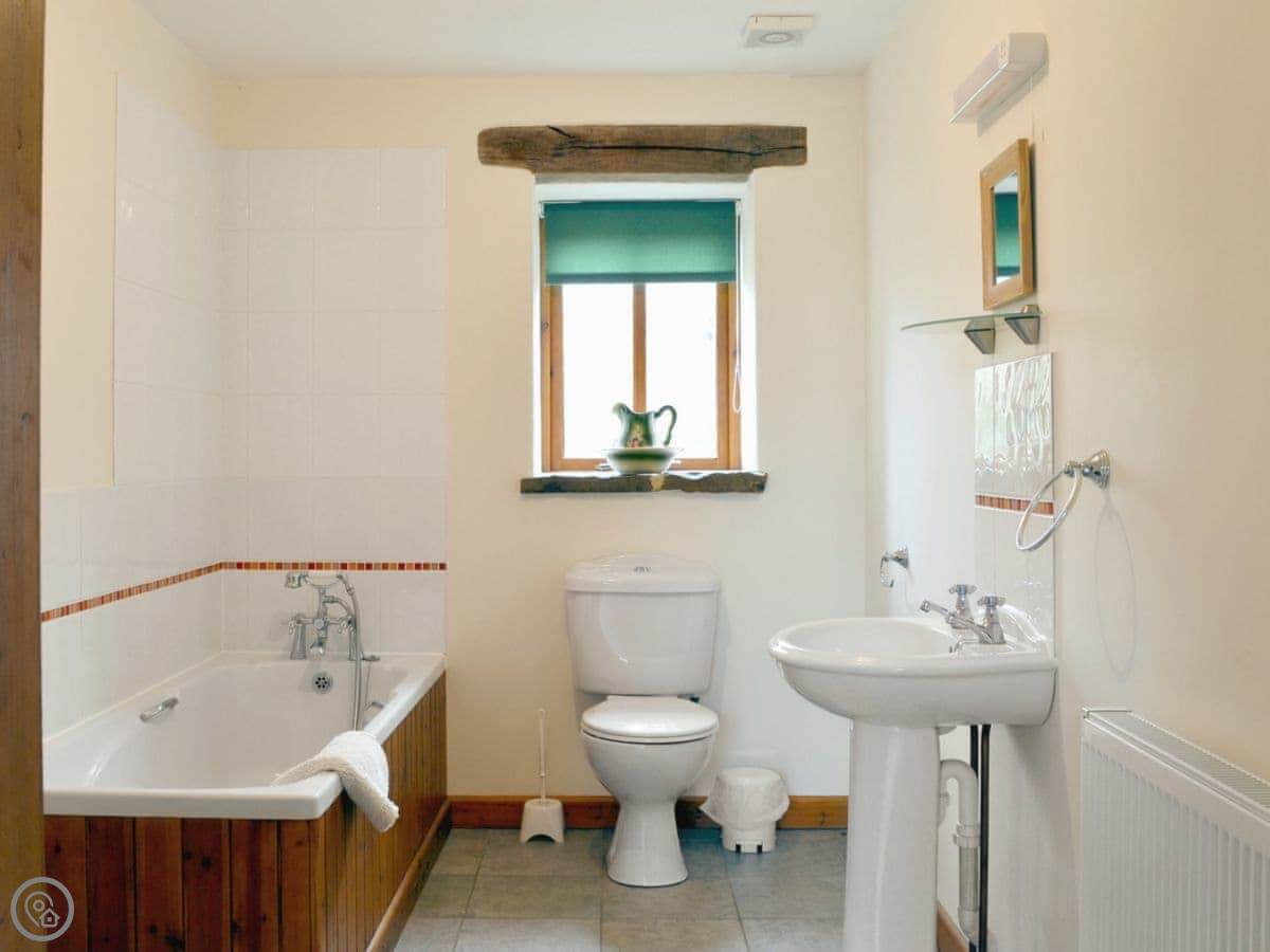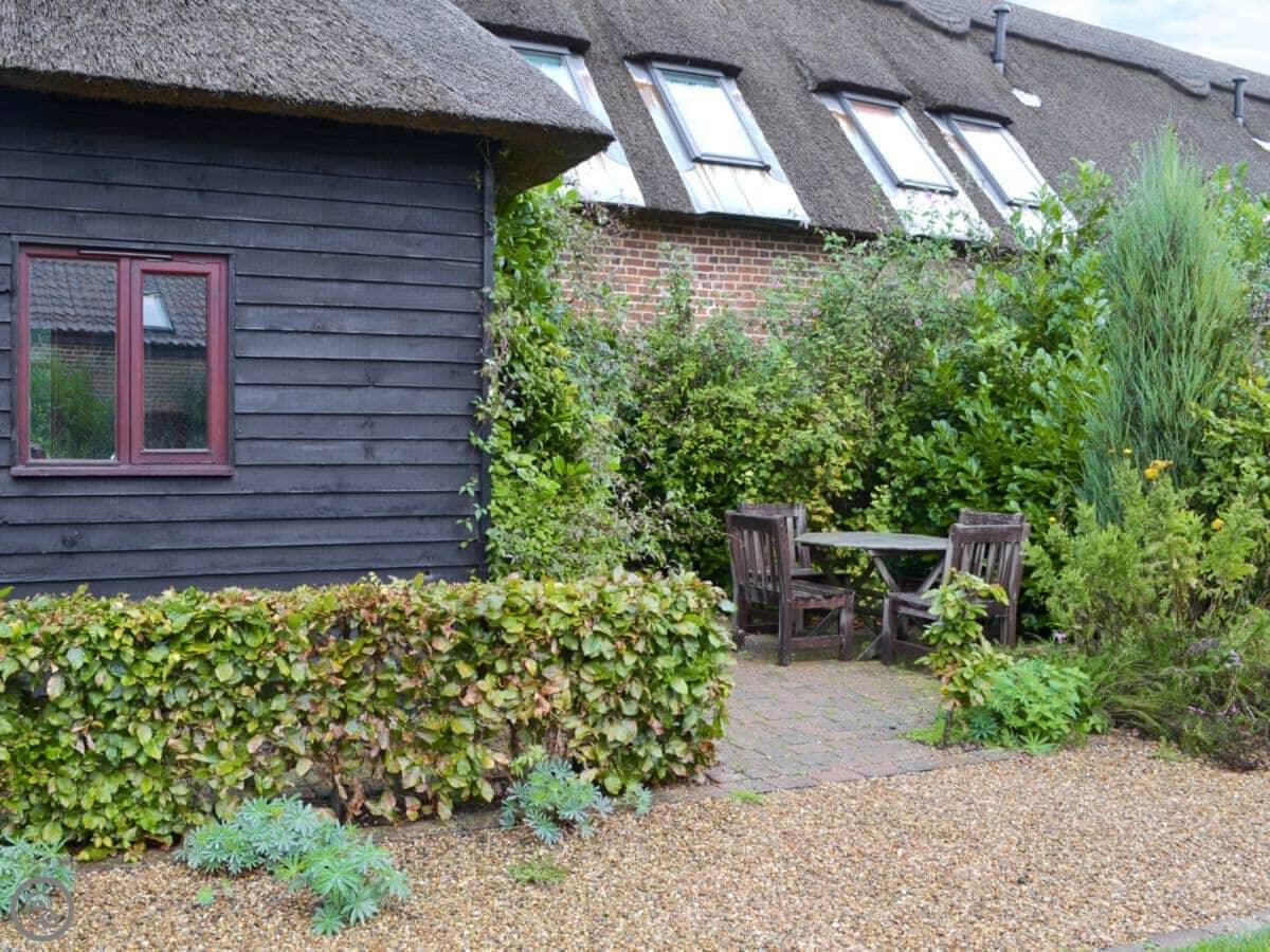 You've got your own patio out the back. There's parking right outside. Facilities are all there: WiFi, a washing machine, bedding and towels are included. We have a cot and a highchair if you need them. We take up to two dogs.
