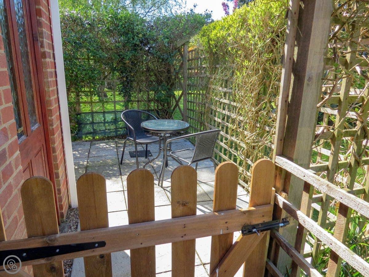 In terms of what's there: WiFi, TV, washing machine, parking right outside. The bedding is included. You can bring up to two dogs. The garden is enclosed, but it's quite small, just the patio really.