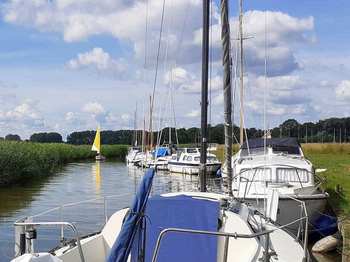 You're right next to Upton dyke, so you can see the boats. It's a two minute walk. Good for a stroll. The village pub is about a hundred yards up the lane. They do food. There's a community shop there too.