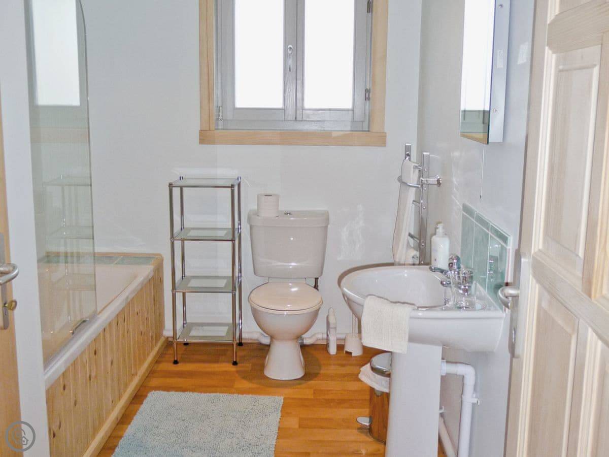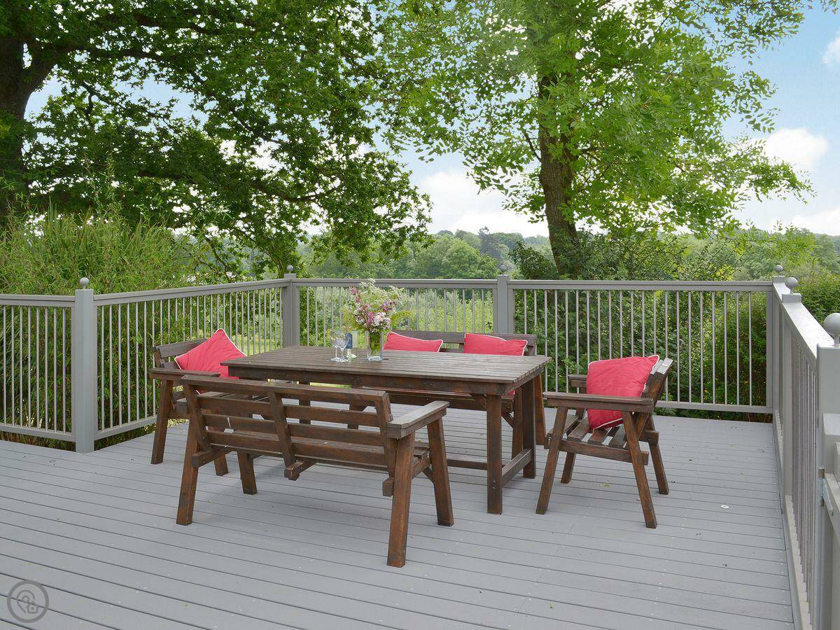 It sleeps seven people. Three bedrooms, two bathrooms. It’s got a 4 Star rating, which means it’s comfortable and well-equipped. The decking area is big and it’s fully enclosed with a gate, which is good for dogs or little kids.