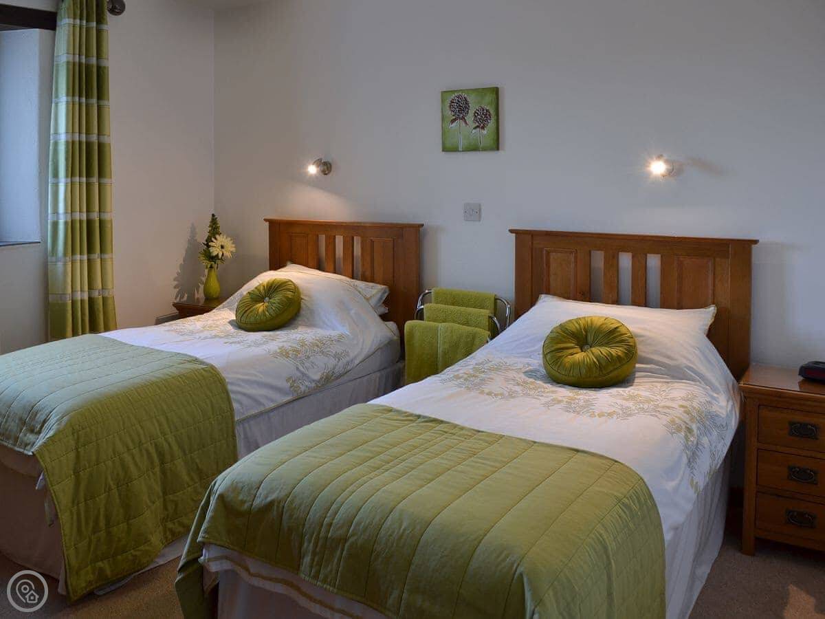 It's a converted stone barn, sleeps four. Two bedrooms, both with their own TV. Two bathrooms, which is handy. It's all on the ground floor. It's got a 4 Star rating. It's clean, comfortable, and the WiFi works.