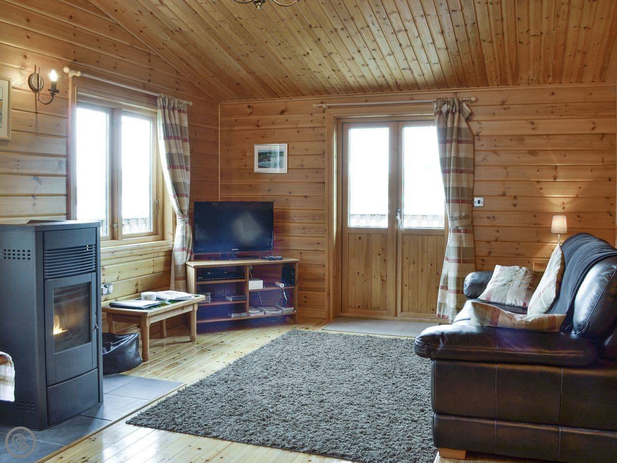 The Larches is a log cabin up on the Kerry Ridgeway near Cwm. It's detached and sits on its own, so it's private. The views are very good, looking out over the Shropshire Hills.