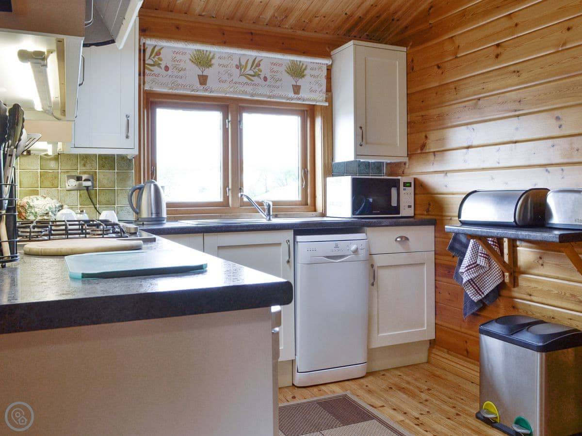 The cabin is wheelchair accessible inside and there's parking right outside. The garden is enclosed. Facilities include a dishwasher, washing machine, and a BBQ. Bedding and towels are included. A cot and highchair are available if you need them. We can put up a tree at Christmas if you're booking over the holiday.