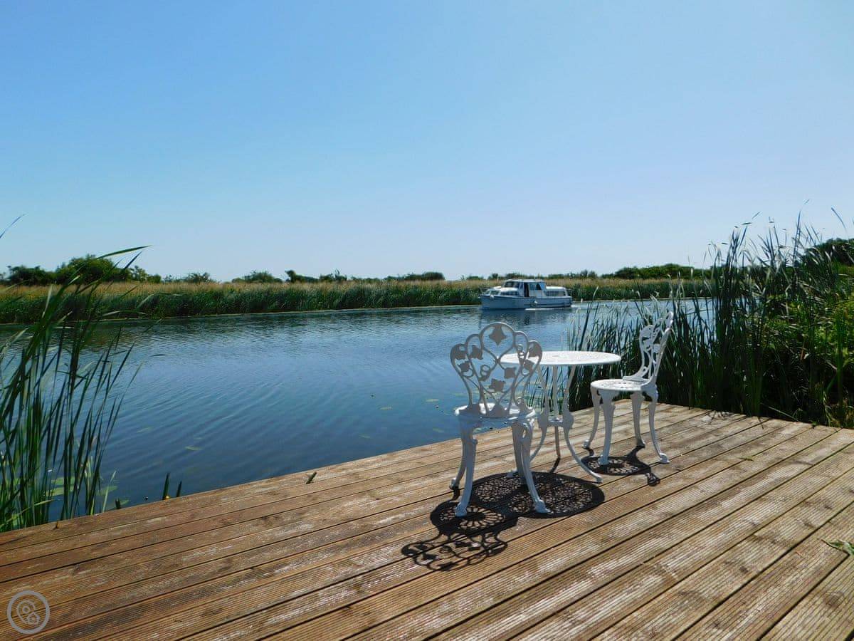 You can sit outside and watch the river. It's very quiet here. People come for the fishing, or for walking and cycling along the bank.