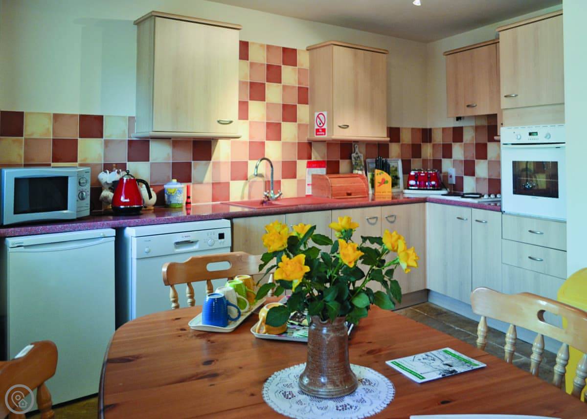 It sleeps four. The rating is 4 Star. It’s comfortable and well-equipped, with things like a dishwasher and wifi. There's a woodburning stove for colder evenings.