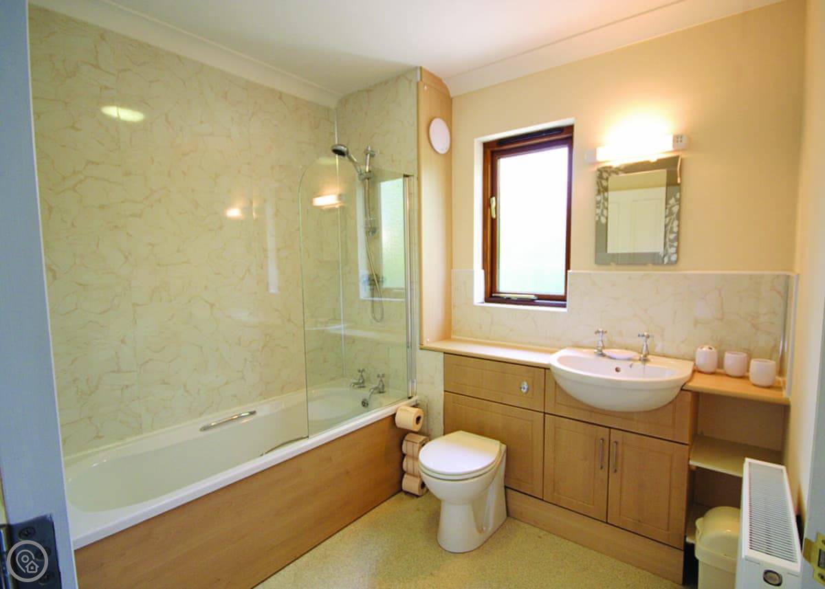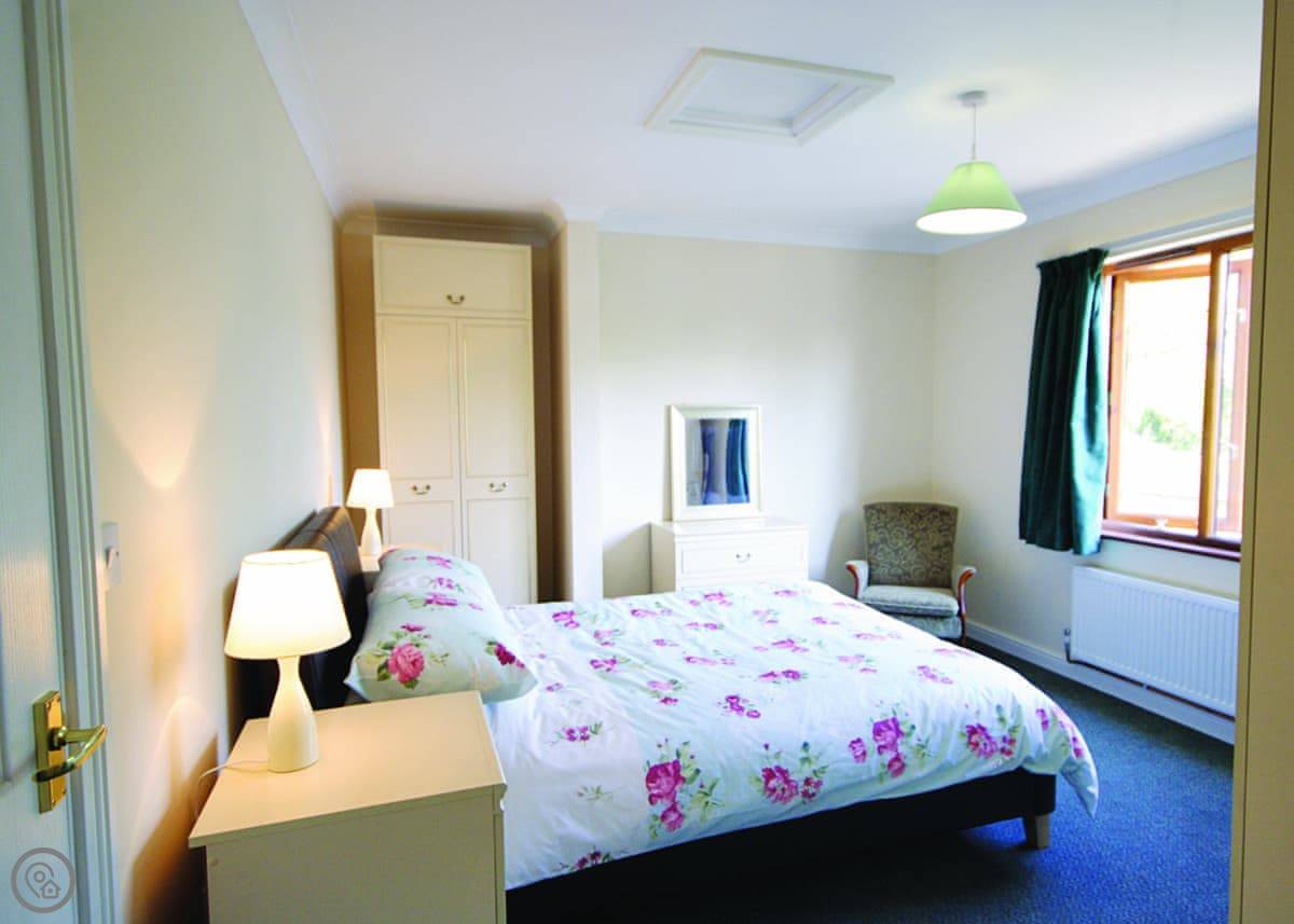It sleeps six. Three bedrooms and two bathrooms, which is handy. Everything's on the ground floor, so no stairs to worry about. The main thing is the view out over the water. There's also a mooring if you bring a boat, and we leave a rowing dinghy there for guests to use. You can fish from the garden or from the dinghy.