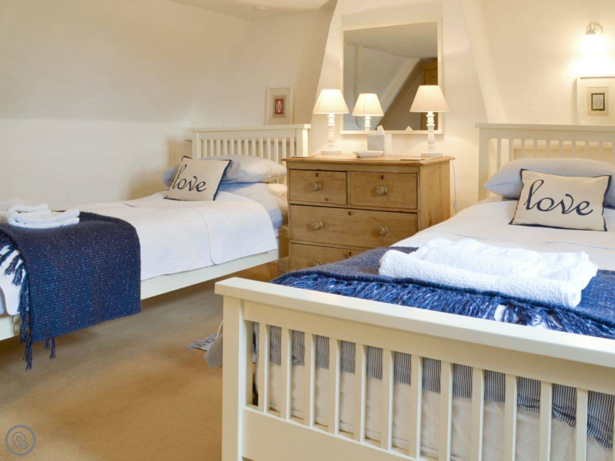 The cottage sleeps four. Two bedrooms upstairs, one bathroom downstairs. It's got a 4 Star rating. It's clean, it's warm. It's been renovated but it's still an old cottage, so the ceilings are low in places. There are some beams.