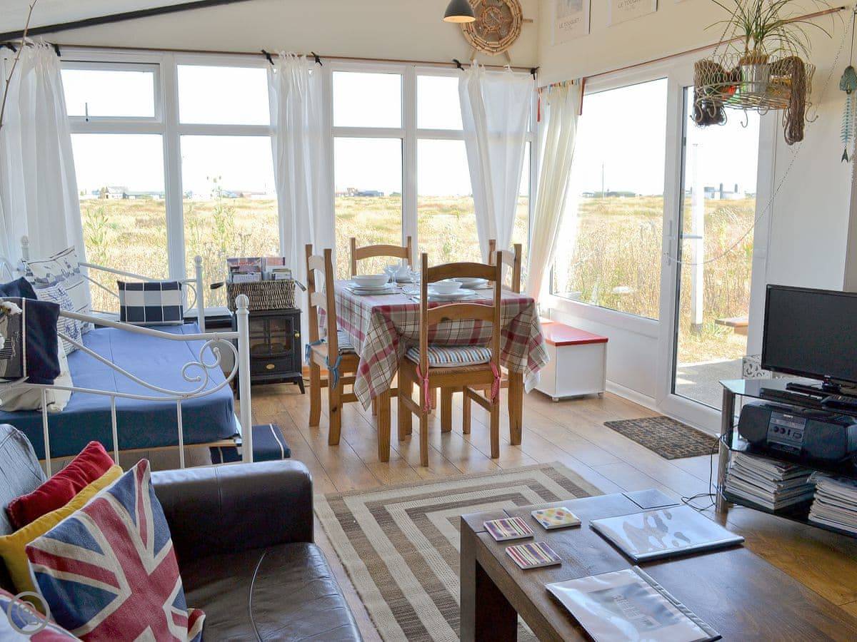 You're right in the middle of the shingle. It's a strange, flat landscape. Quiet. You get a lot of sky. The beach is a short walk away. There's a pub and a tea room about quarter of a mile down the road.