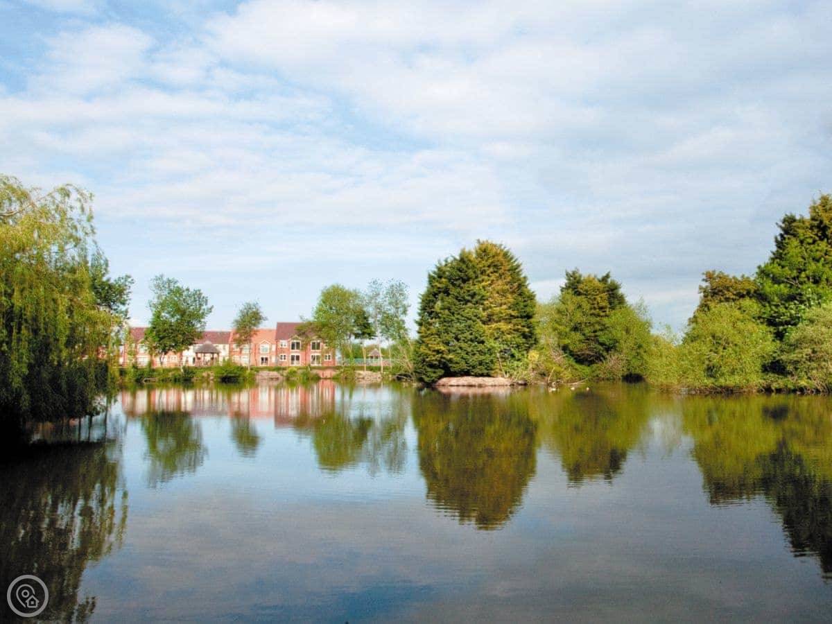 Dragon Fly Cottage is in Huntworth, Somerset. It's one of two cottages by a lake. The lake is on our land, about 12 acres. You'll see swans, maybe deer or badgers. The view from the cottage is of the water.