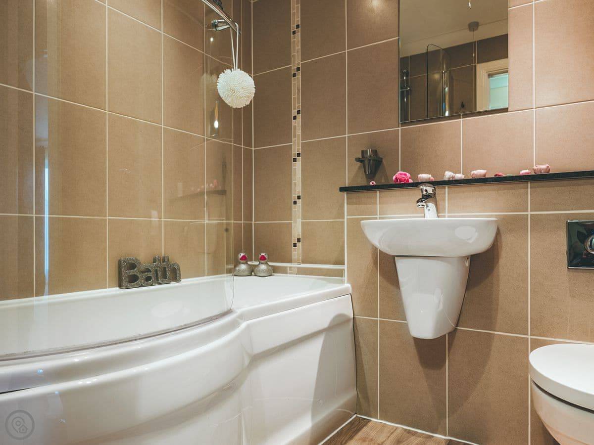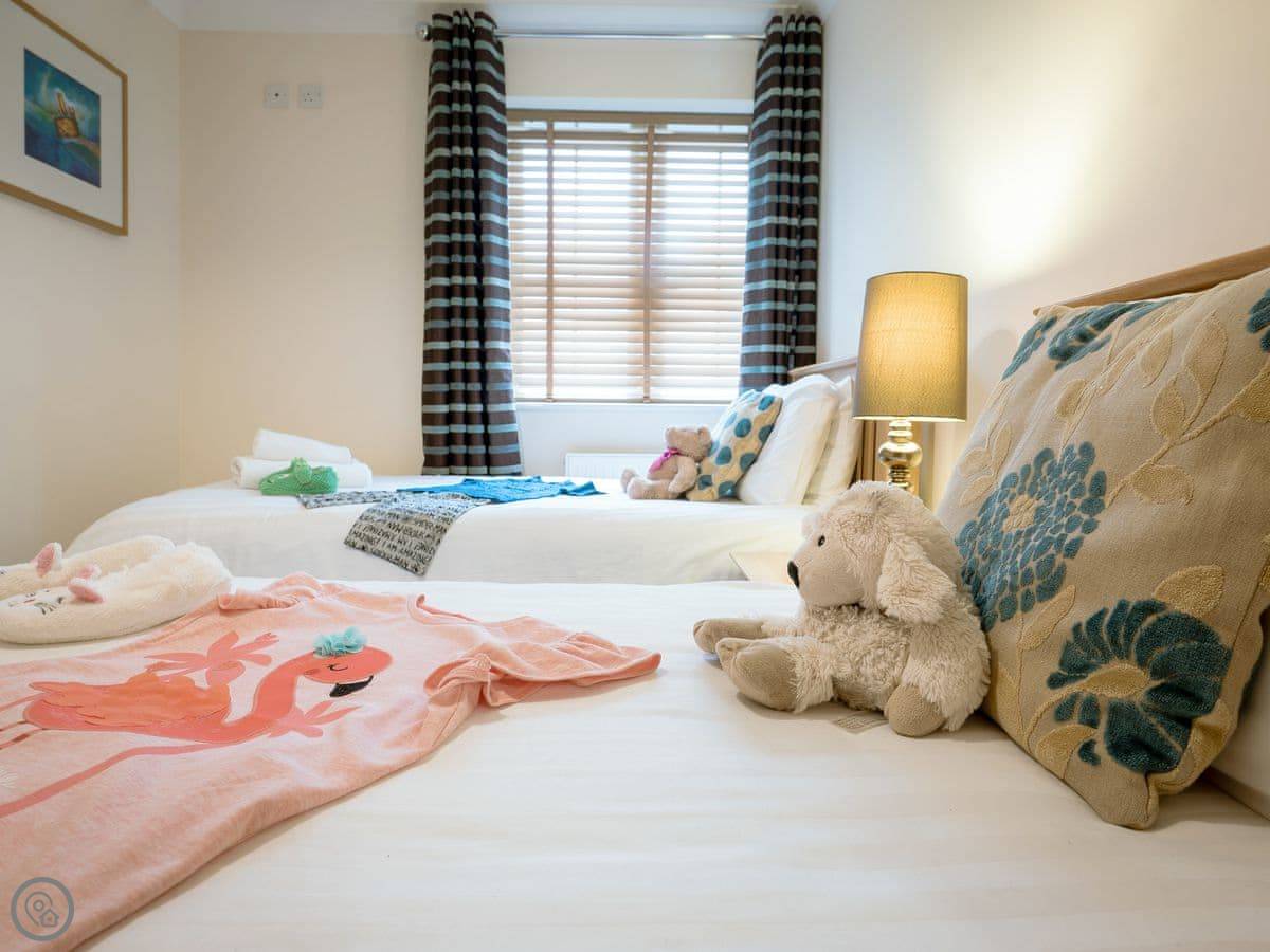 It sleeps six people. Three bedrooms, two bathrooms. It's got a 4 Star rating, which means it's comfortable and well kept. It is semi-detached, so the other cottage might be occupied.