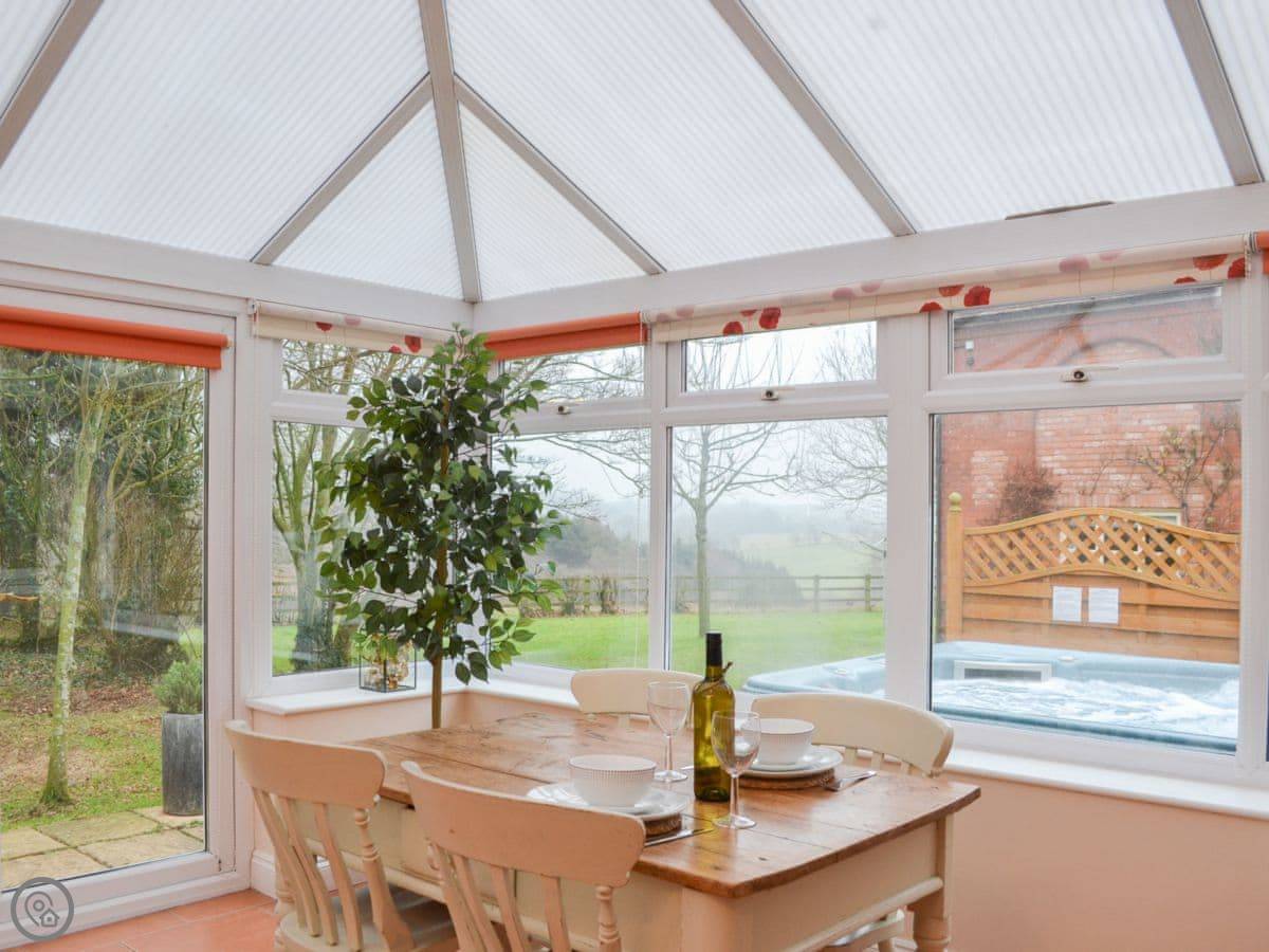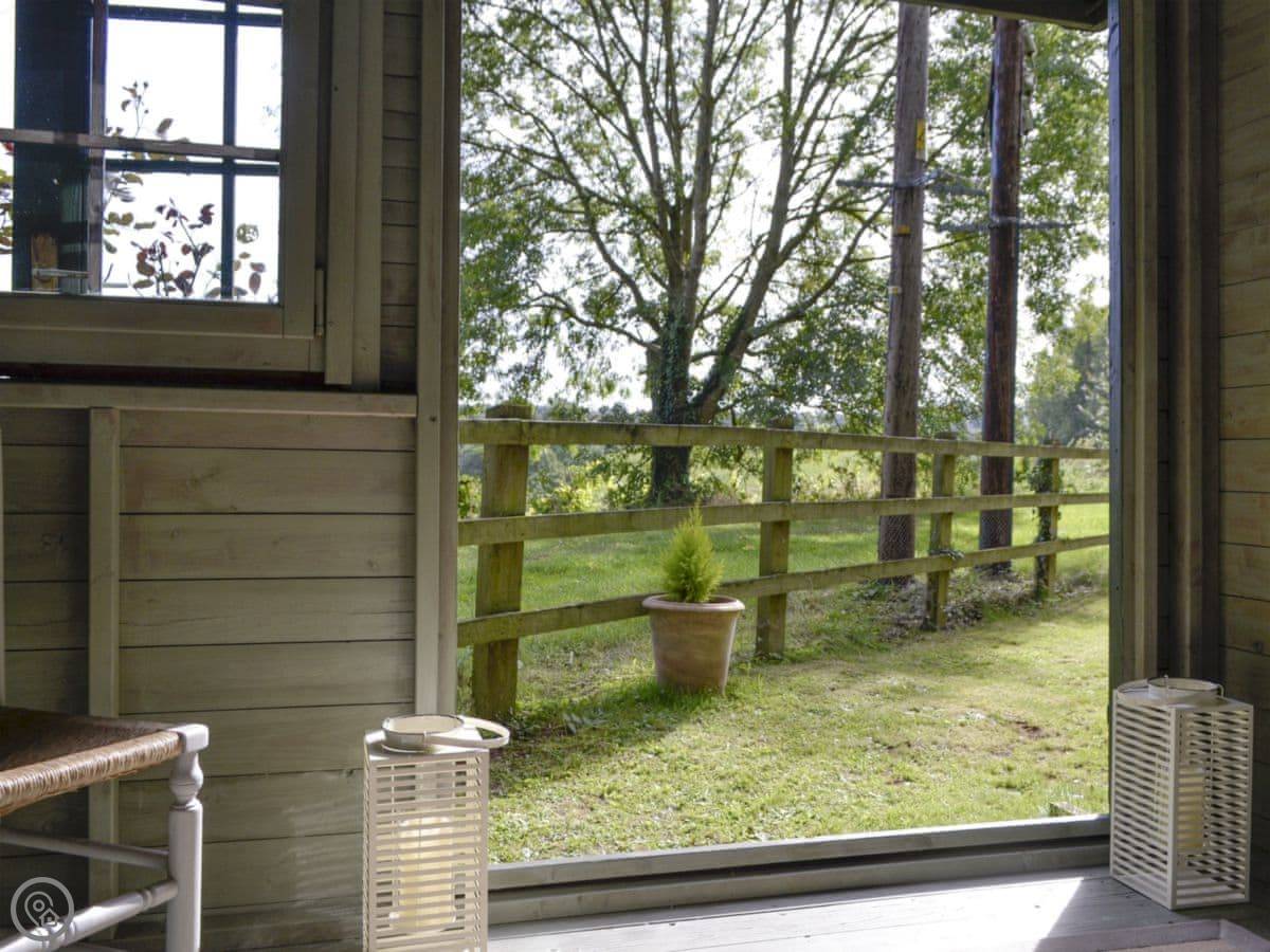 There's a hot tub outside. You look out over the Three Choirs Vineyard fields and the hills towards the Forest of Dean. It's very quiet.