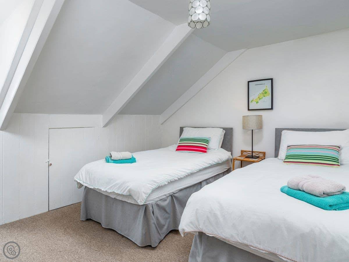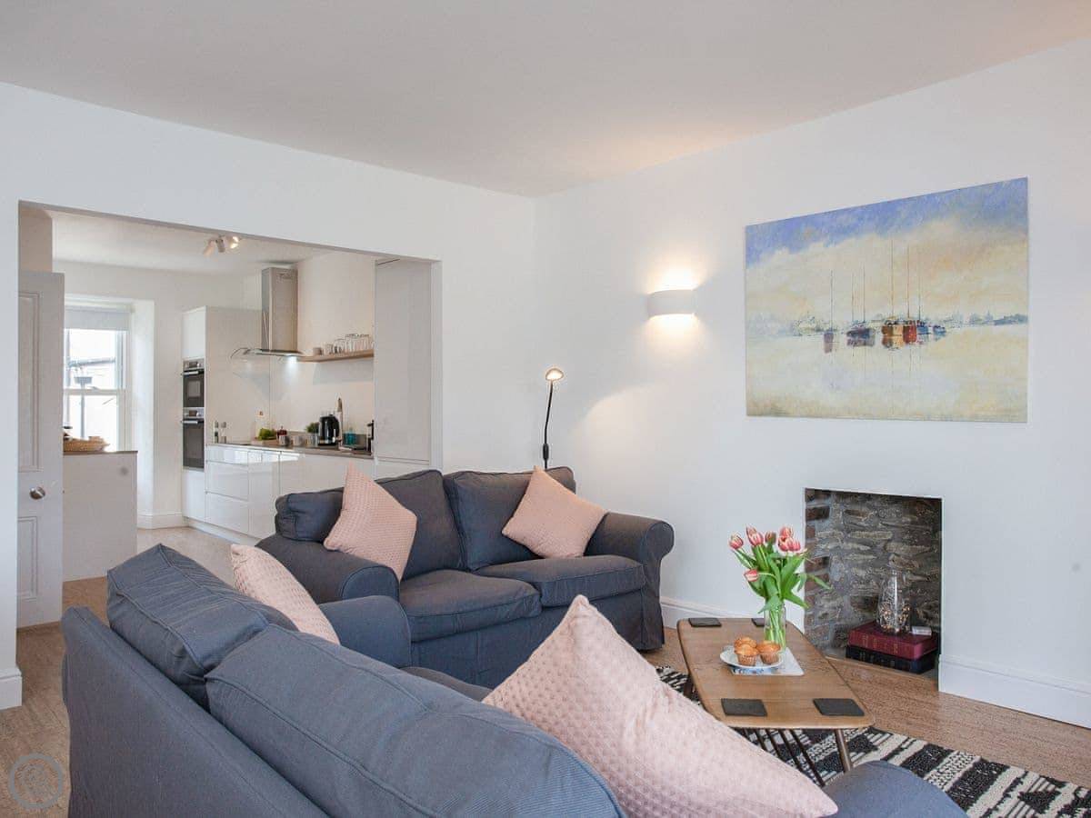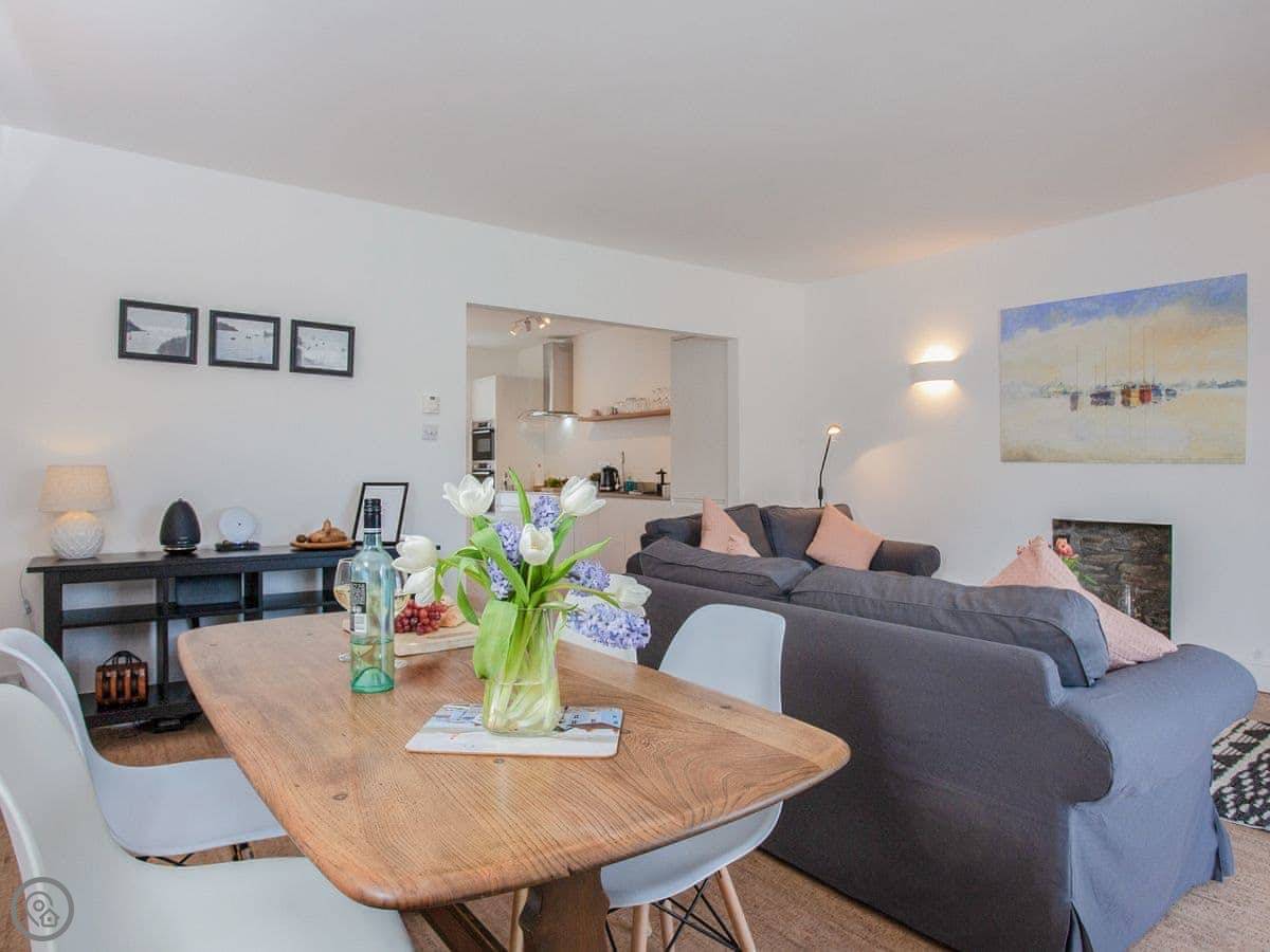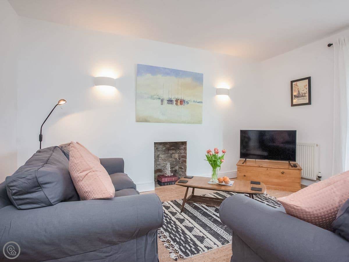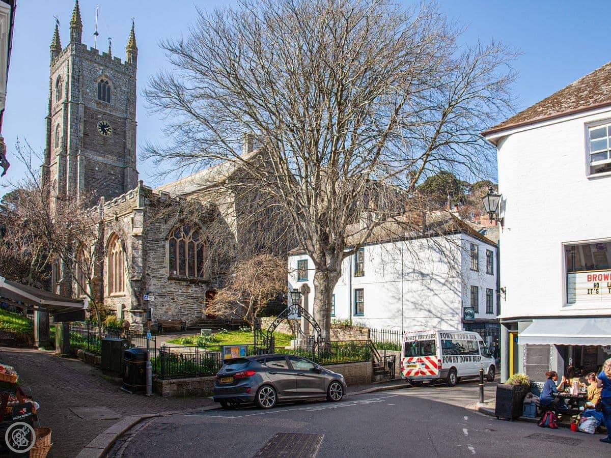 You're about a minute's walk from the middle of Fowey. All the shops, cafes, and pubs are right there. For the beach, you walk down to Readymoney Cove. That takes about ten or fifteen minutes on foot.