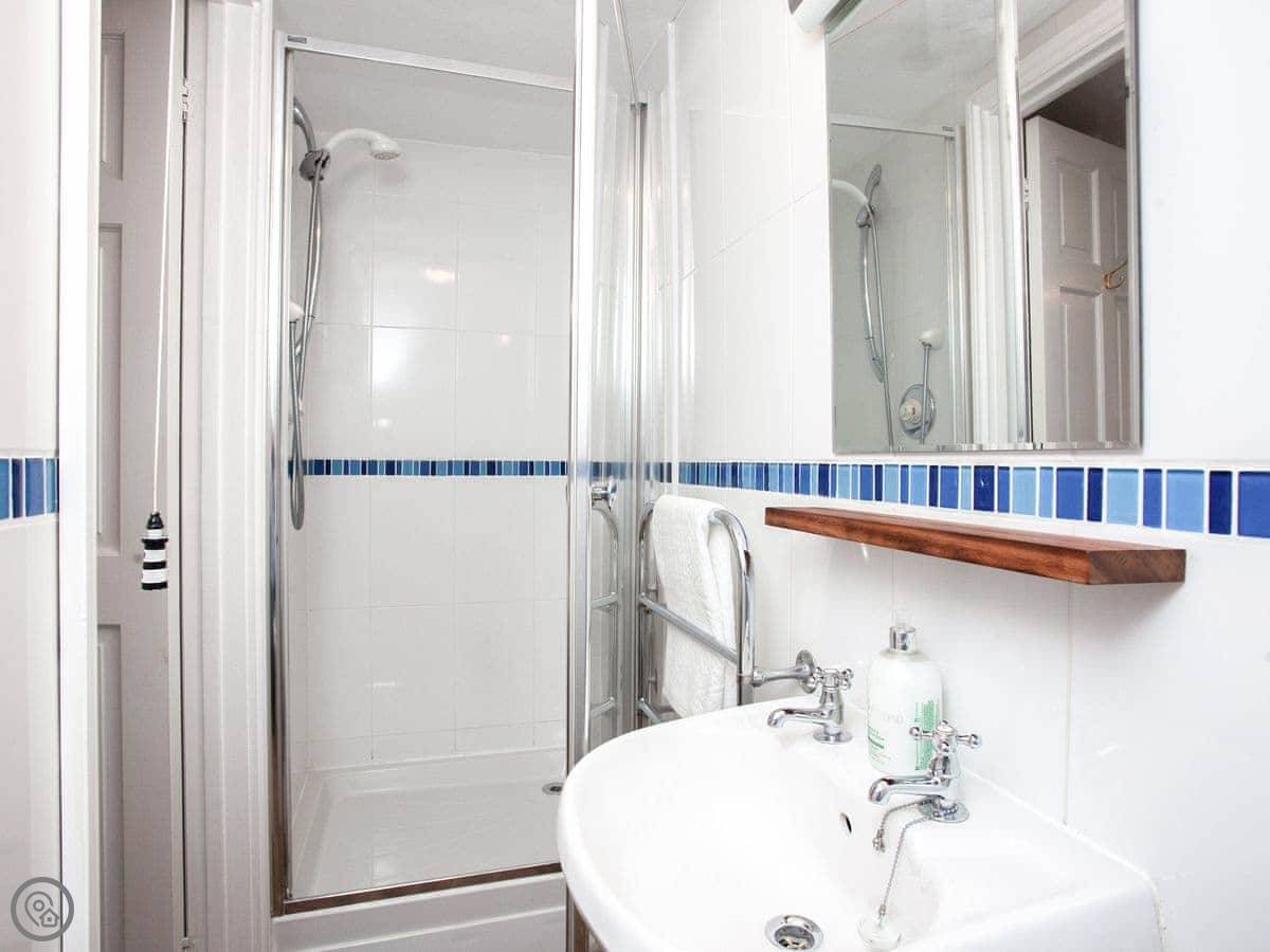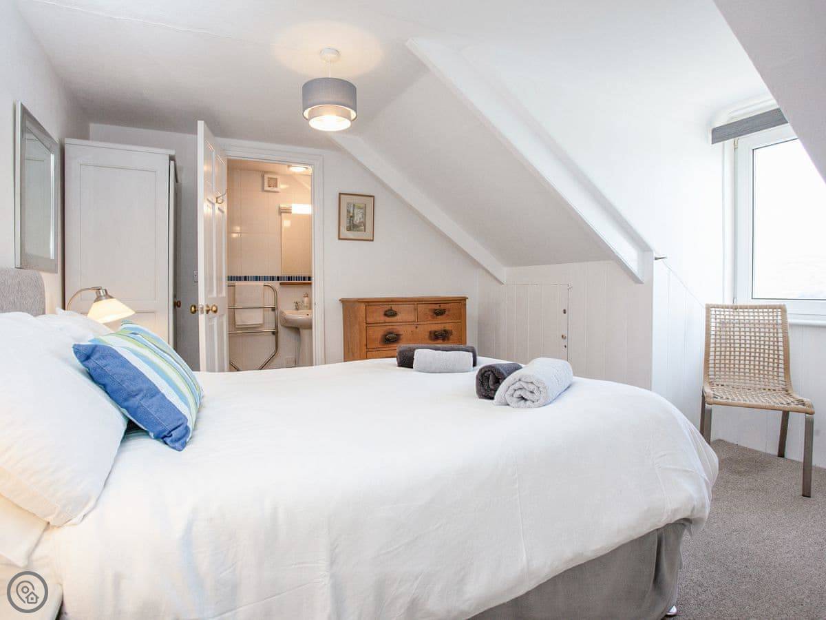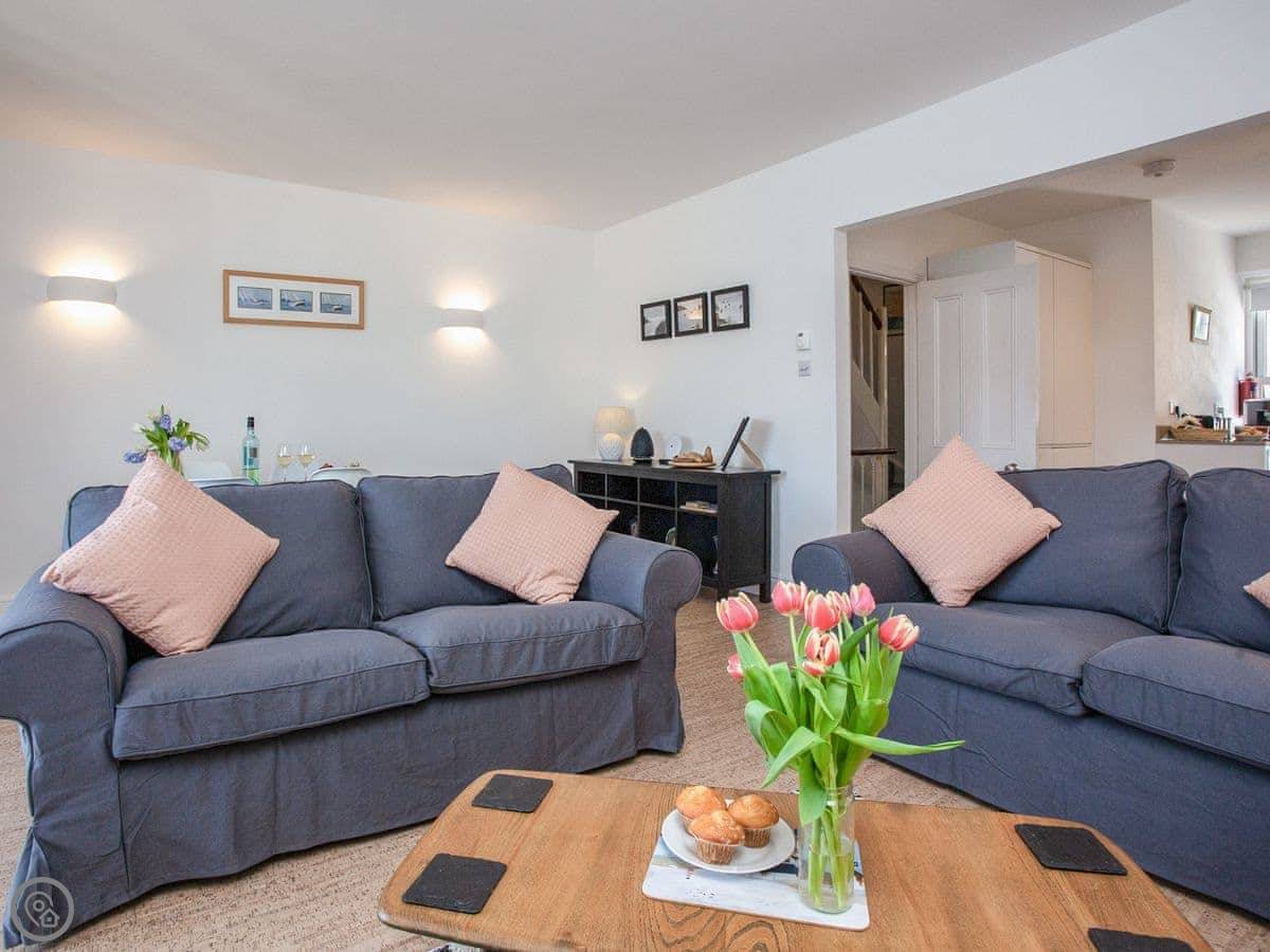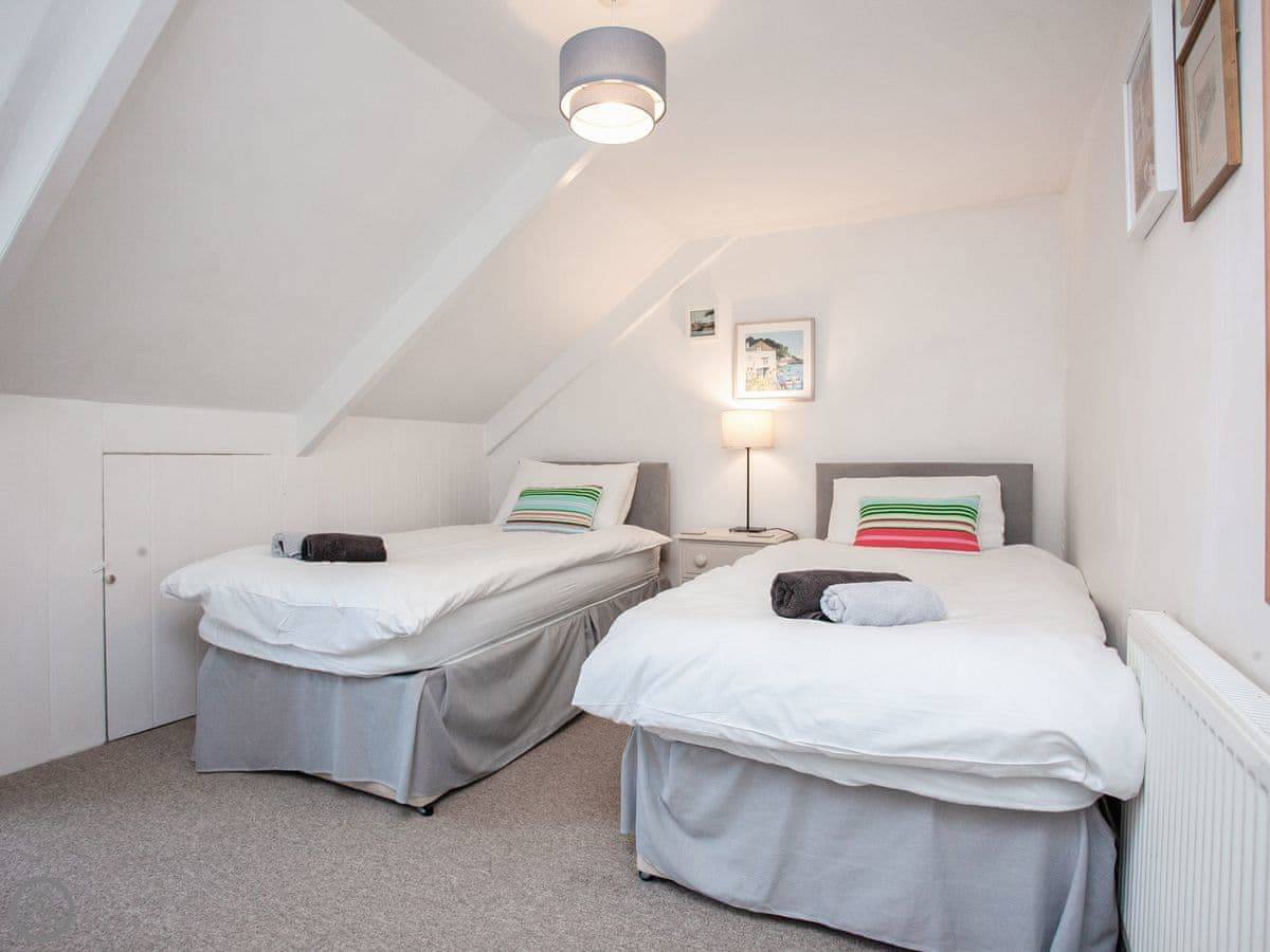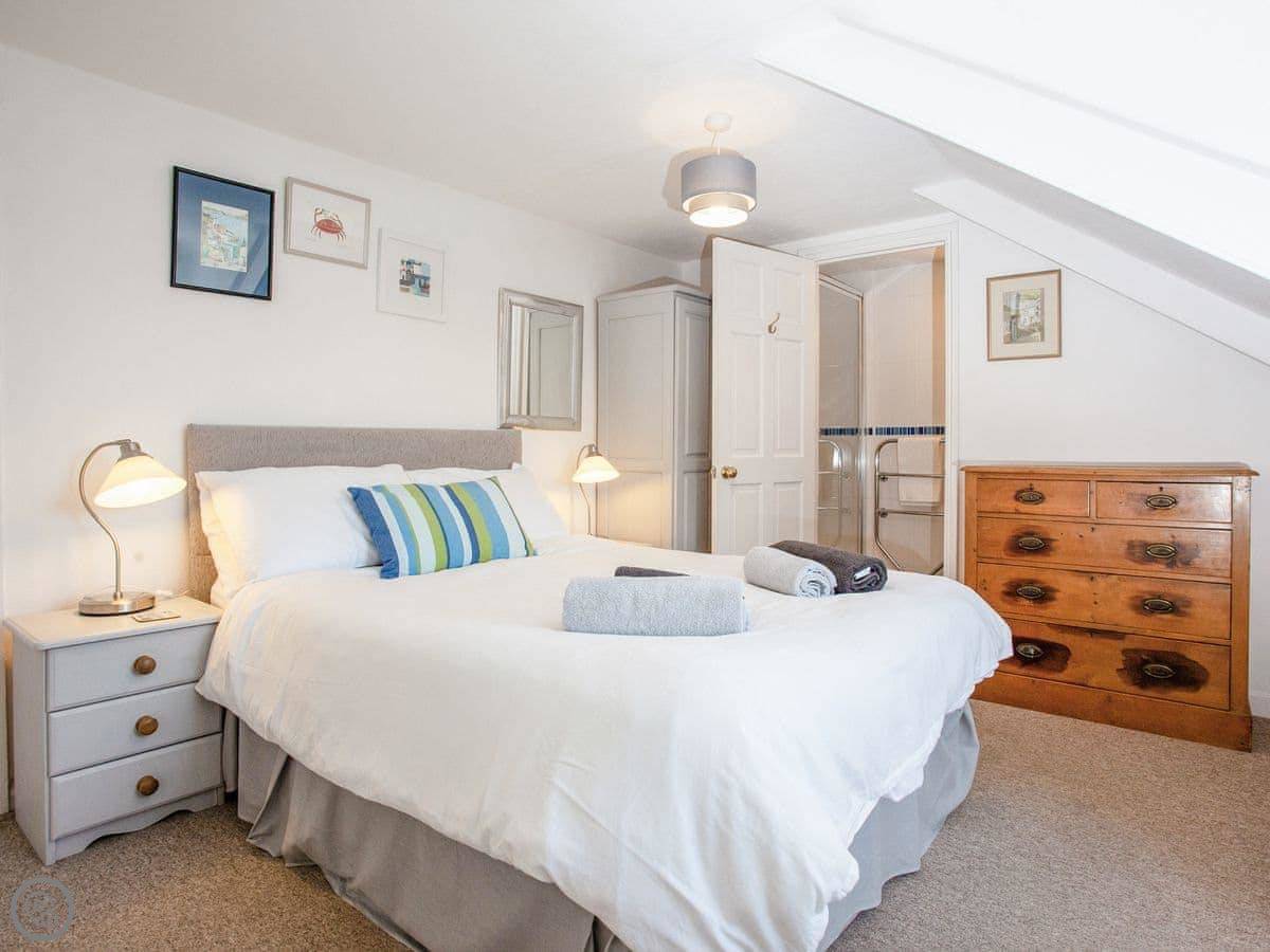 You're about a minute's walk from the middle of Fowey. All the shops, cafes, and pubs are right there. For the beach, you walk down to Readymoney Cove. That takes about ten or fifteen minutes on foot.