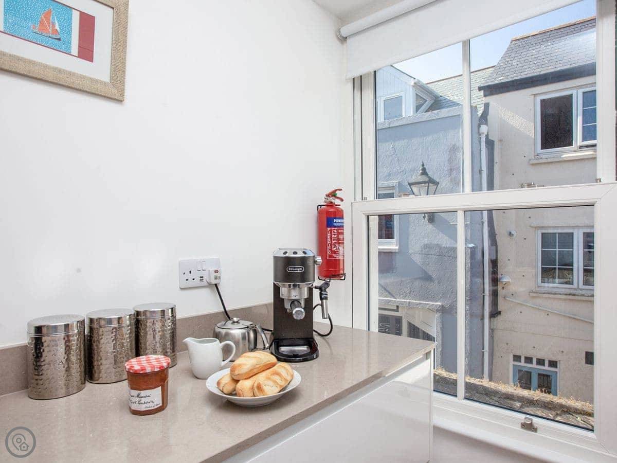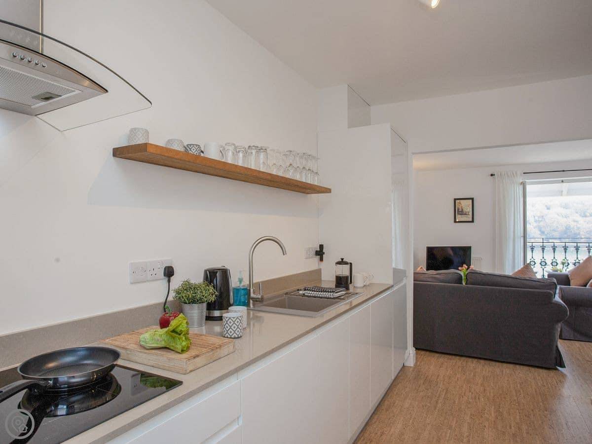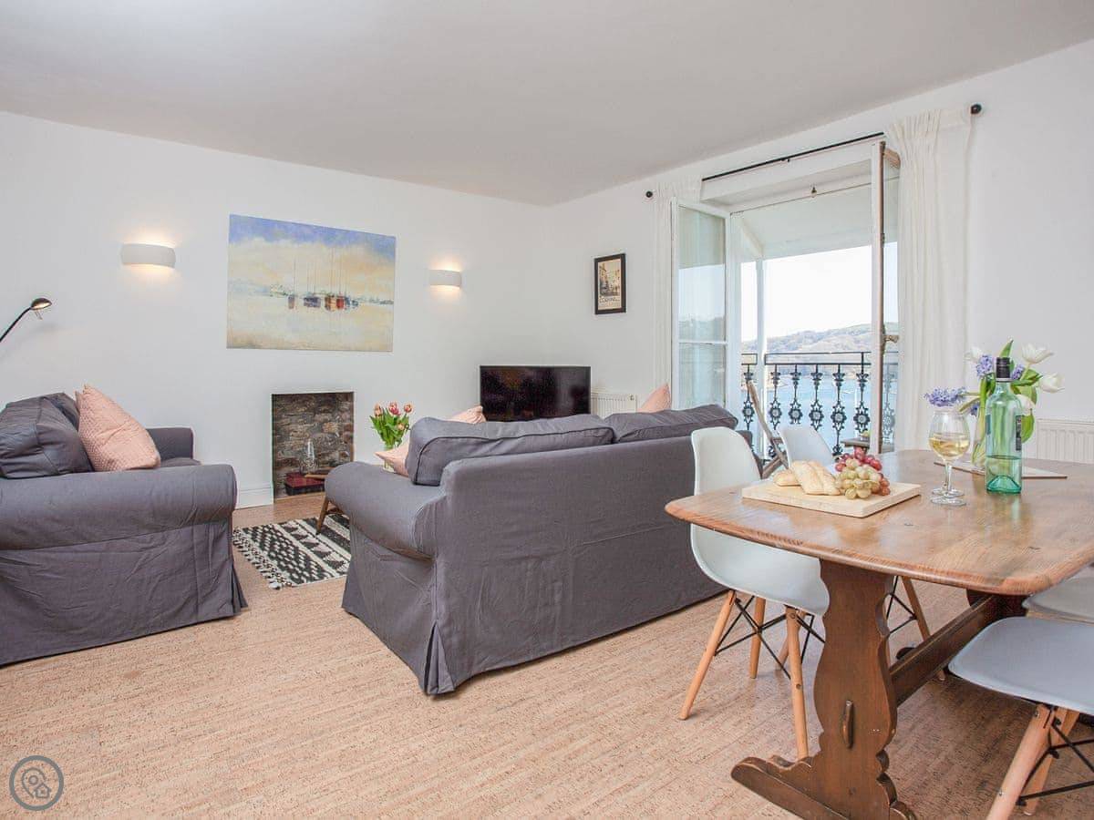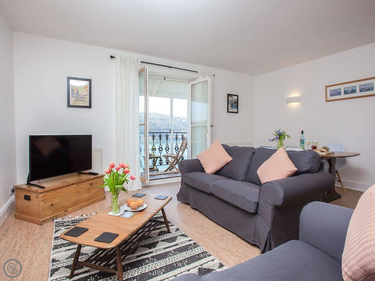Little Quoin is an apartment on one of the upper floors of a big Victorian building right on the Fowey Esplanade. So the main thing is the view. You look straight out over the river, the harbour, and the sea. It's not obstructed.
