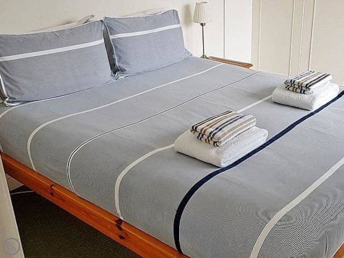 Inside, it's got everything you'd need: a washing machine, dishwasher, WiFi, TV. Bedding and towels are included. There's a cot and highchair if you need them. Pets aren't allowed.
