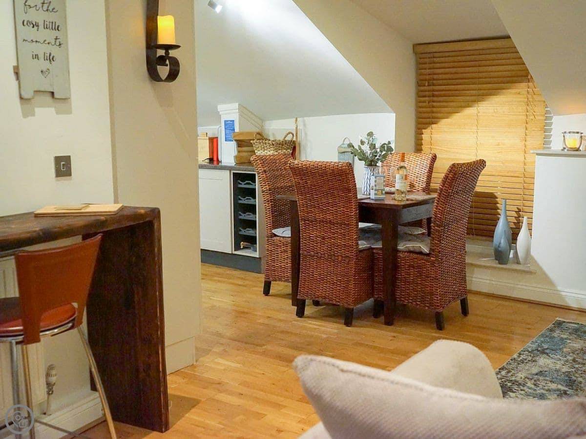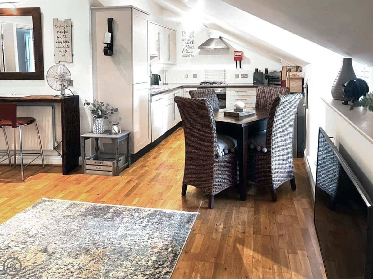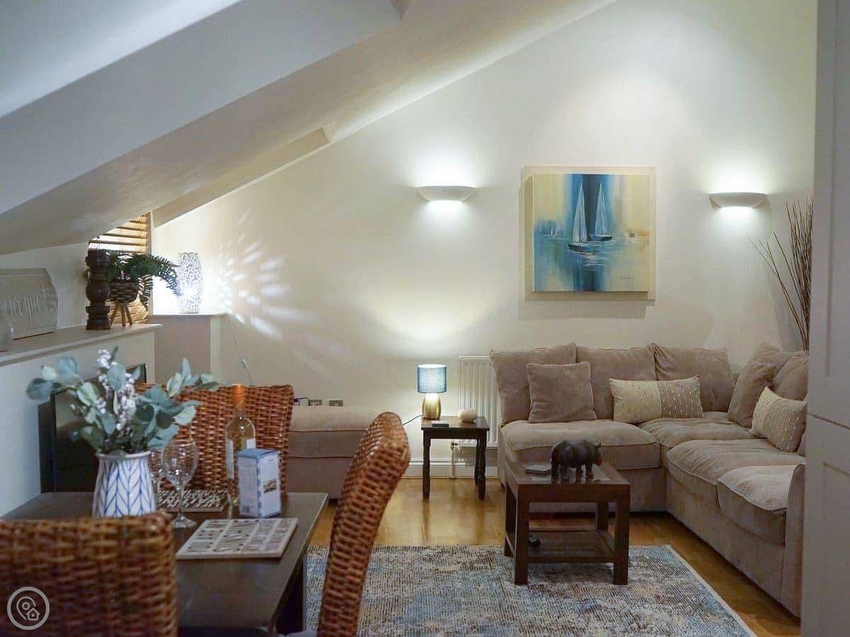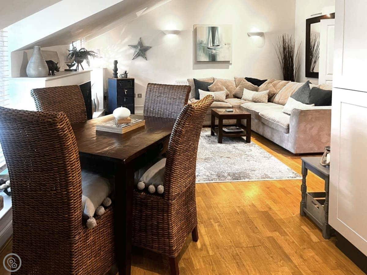 Rosie Cottage is a first-floor apartment in Fowey. It sleeps four, with two bedrooms and one bathroom. It's a modern place and it's got a 4 Star rating.