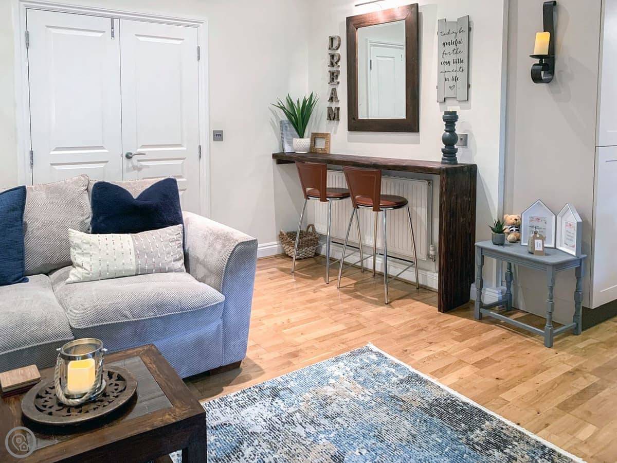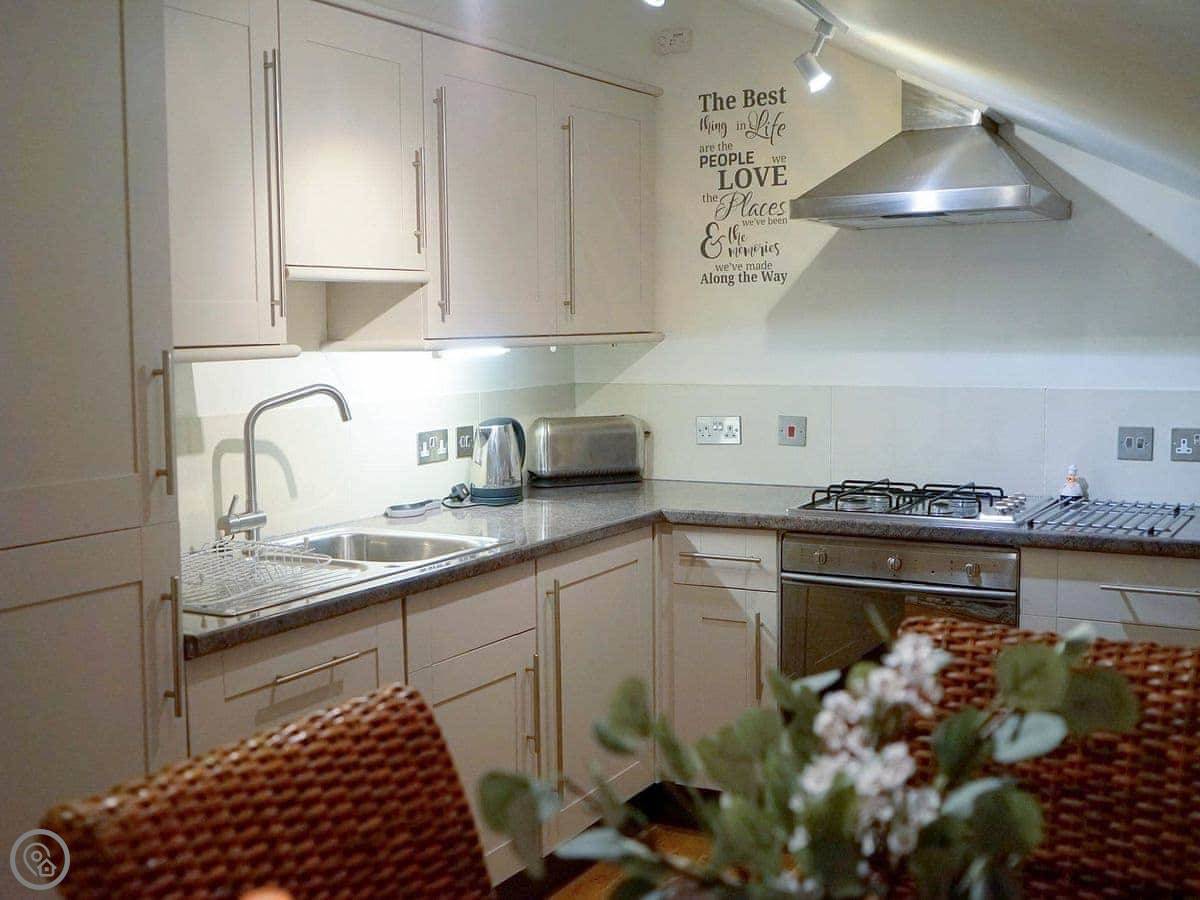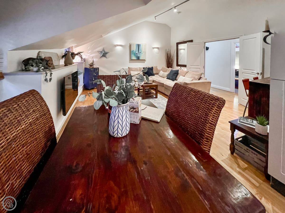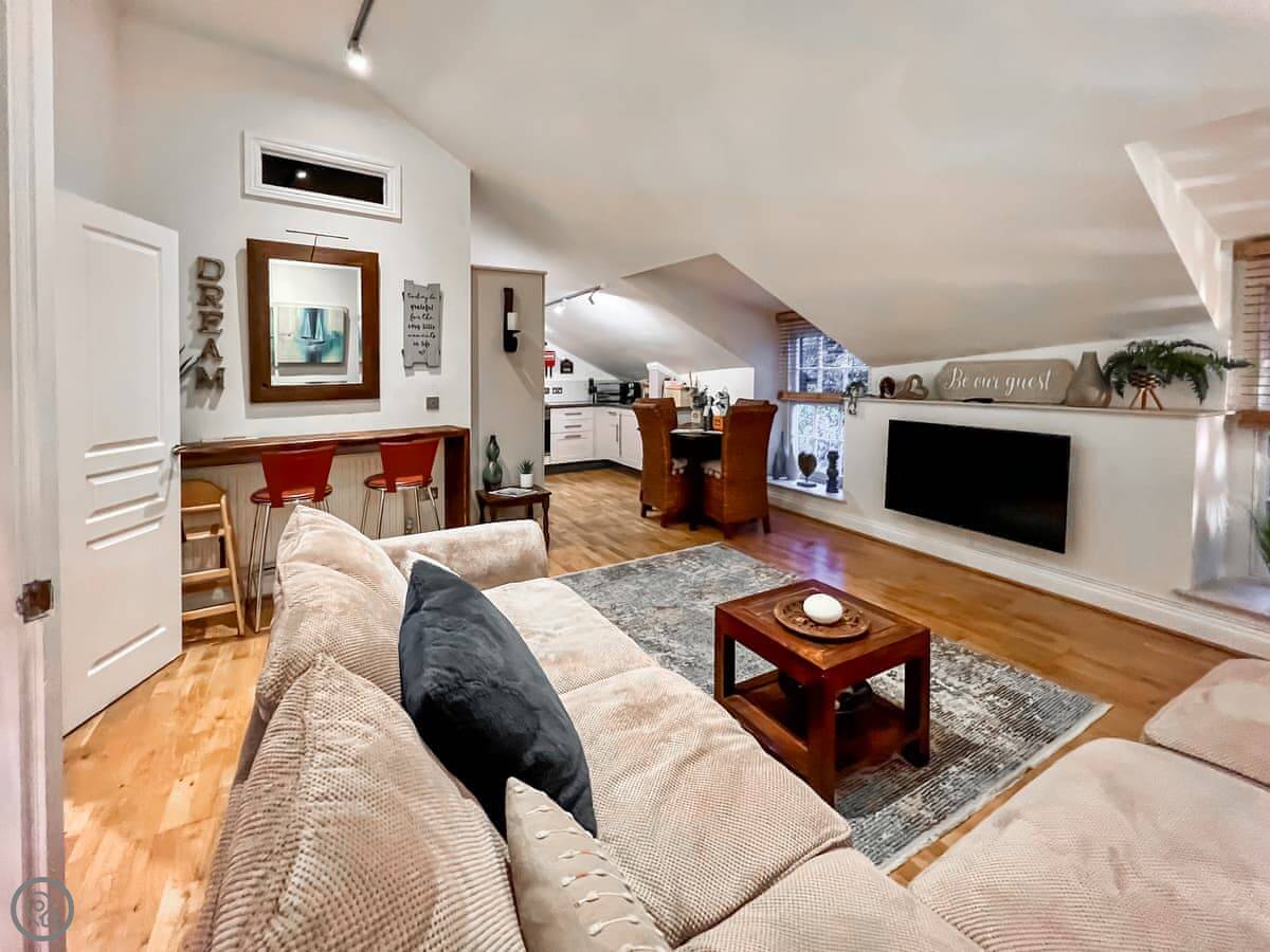 Rosie Cottage is a first-floor apartment in Fowey. It sleeps four, with two bedrooms and one bathroom. It's a modern place and it's got a 4 Star rating.