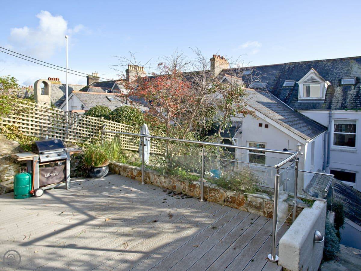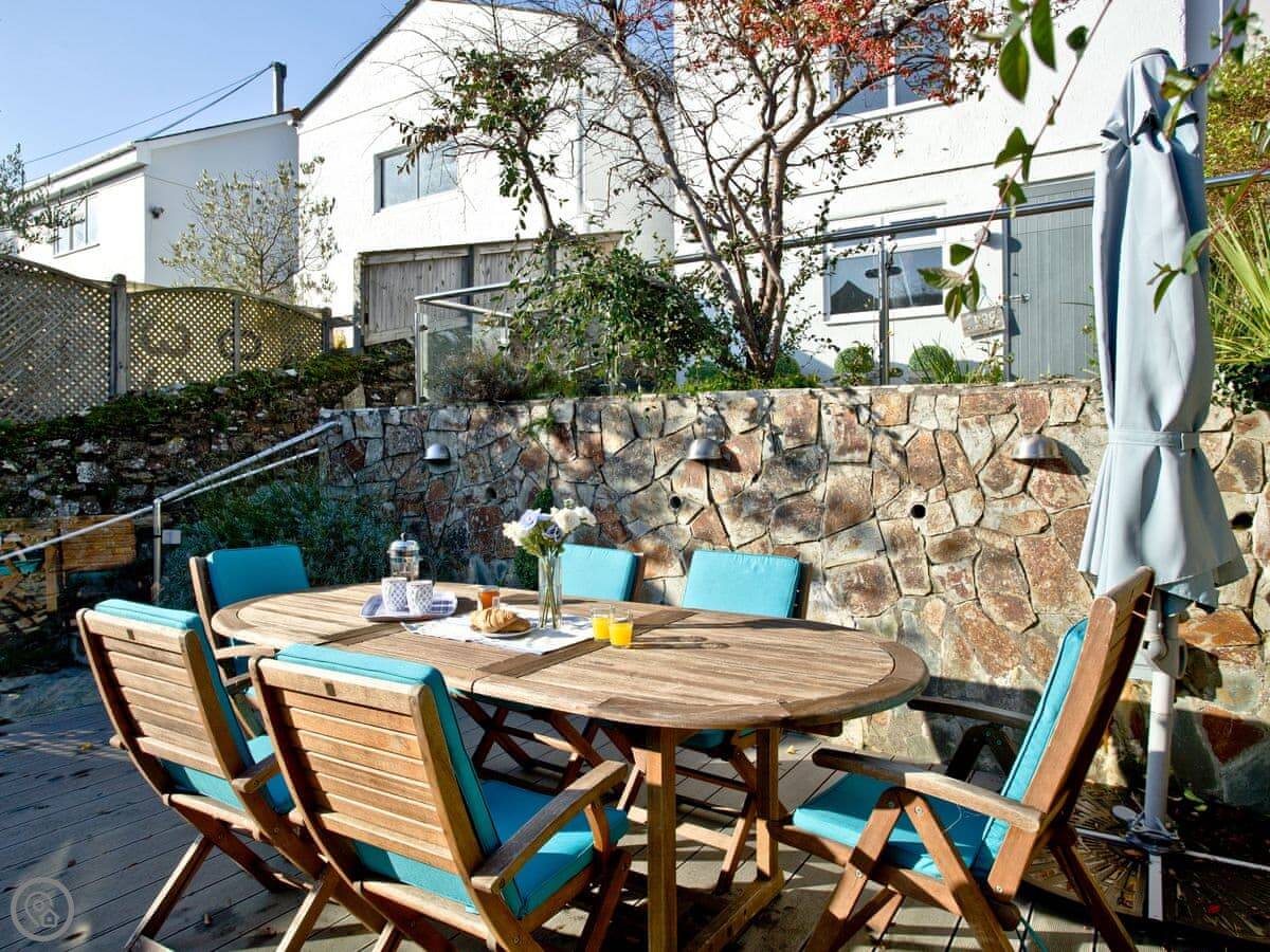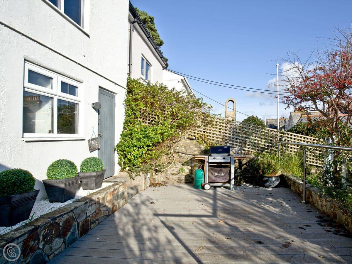 You get a parking space in a shared garage, which is a real bonus in Fowey. Outside, there's a balcony off the living room and two decked patio areas, all sheltered. They're good spots to sit out.