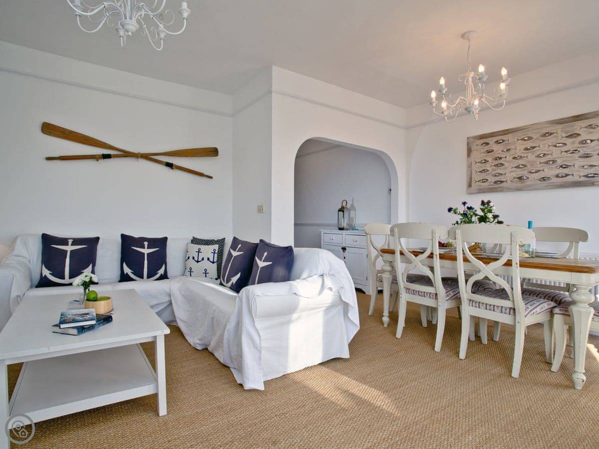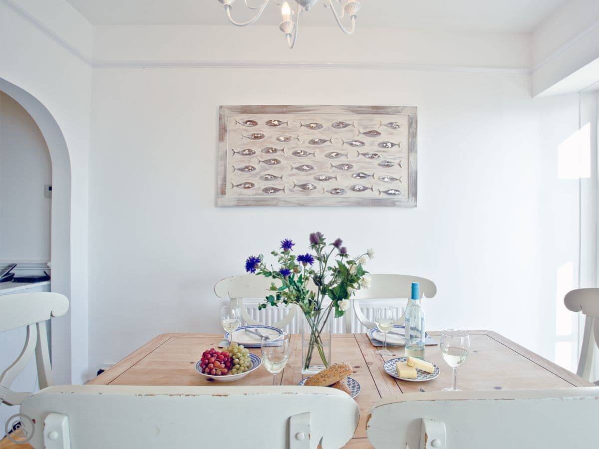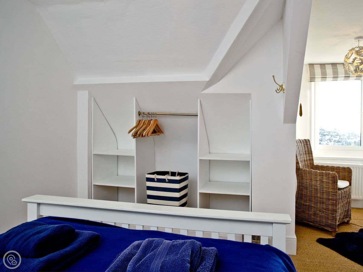 You get a parking space in a shared garage, which is a real bonus in Fowey. Outside, there's a balcony off the living room and two decked patio areas, all sheltered. They're good spots to sit out.