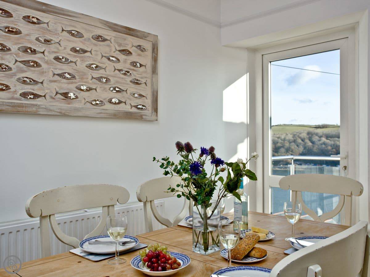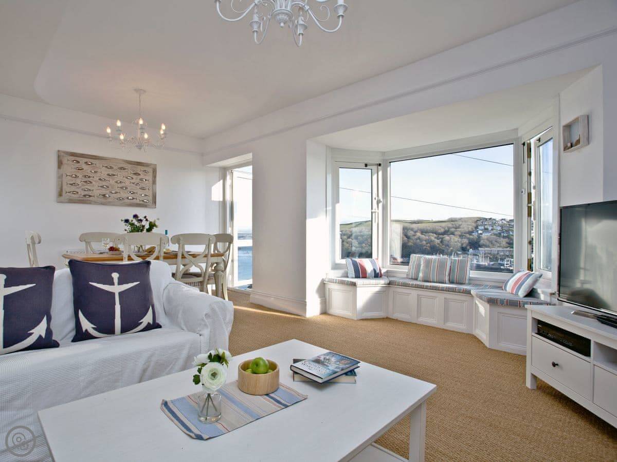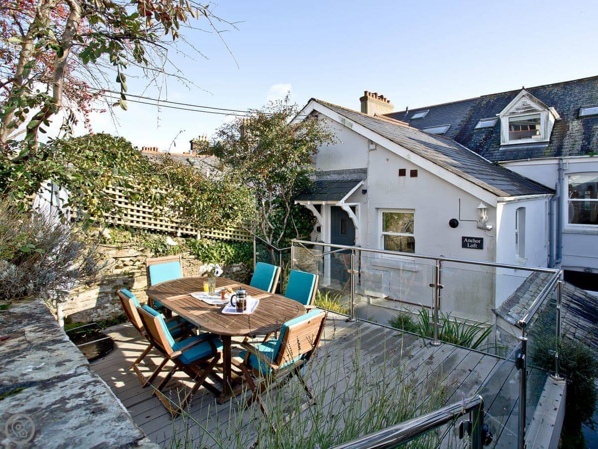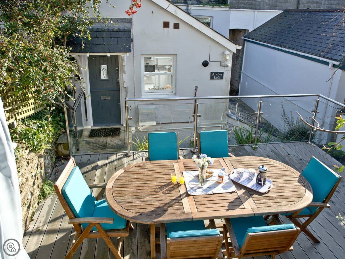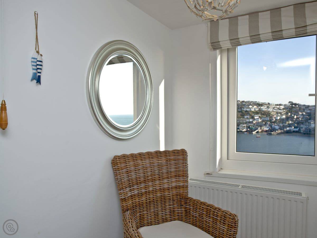 Anchor Loft is a flat at the top of the town in Fowey. It's a maisonette, so it's spread over two floors. The main thing is the view. You get a proper look out over the river from the balcony and the living room.