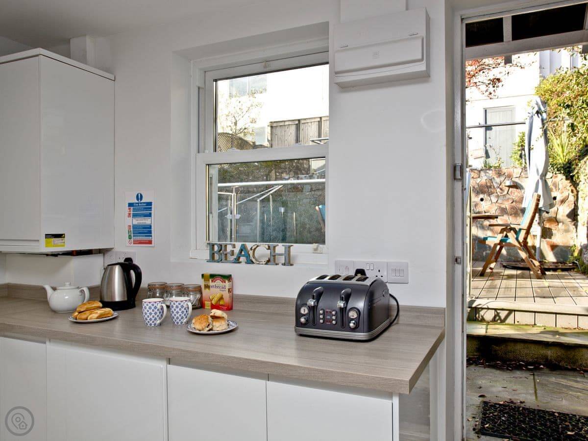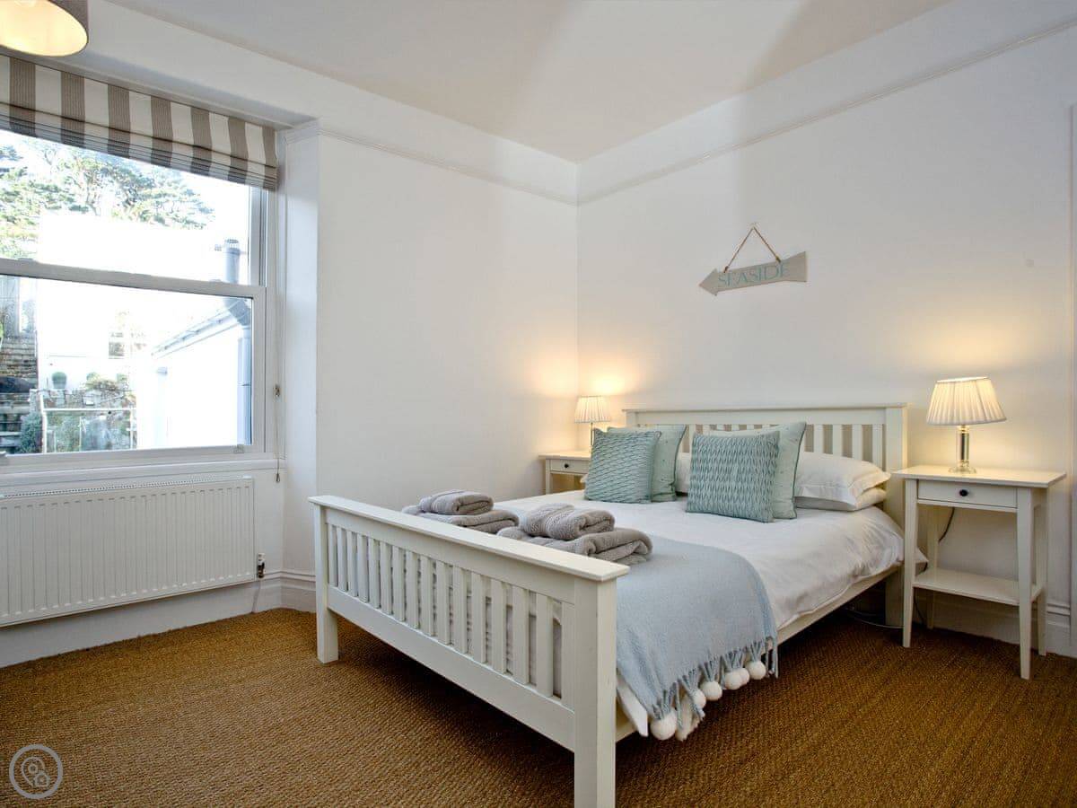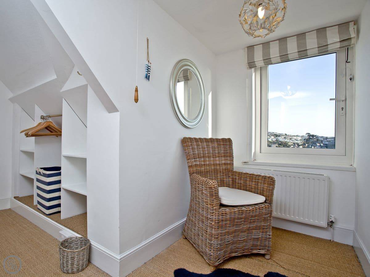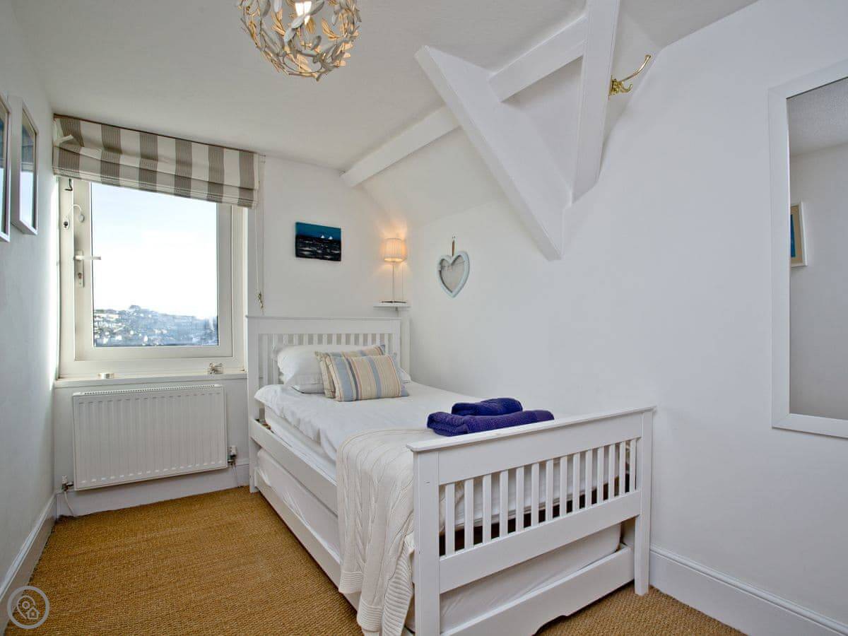 Being up here means you miss the worst of the traffic in the town centre. It's about a ten minute walk down to Readymoney beach, or twenty minutes to the main town shops. The walk back up is steep. There's a town bus that runs if you don't fancy it.