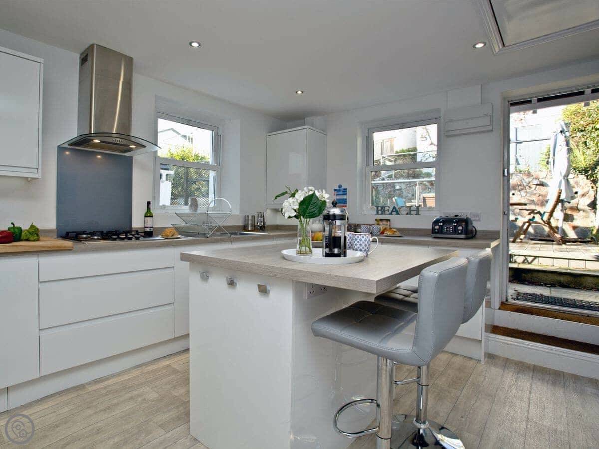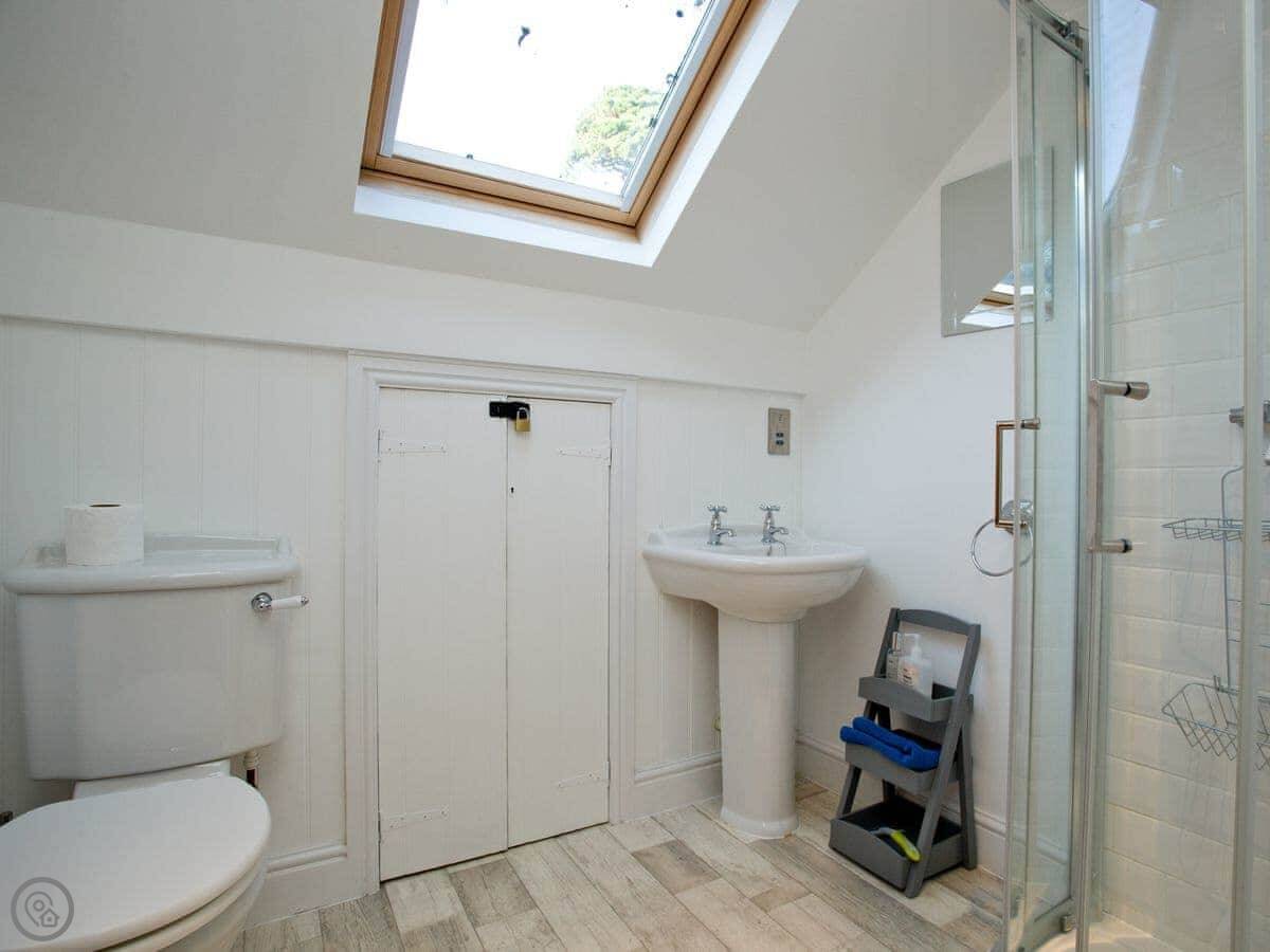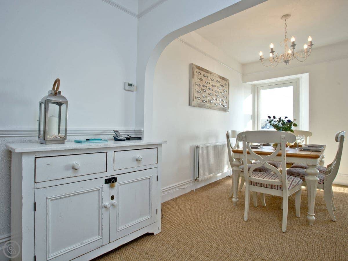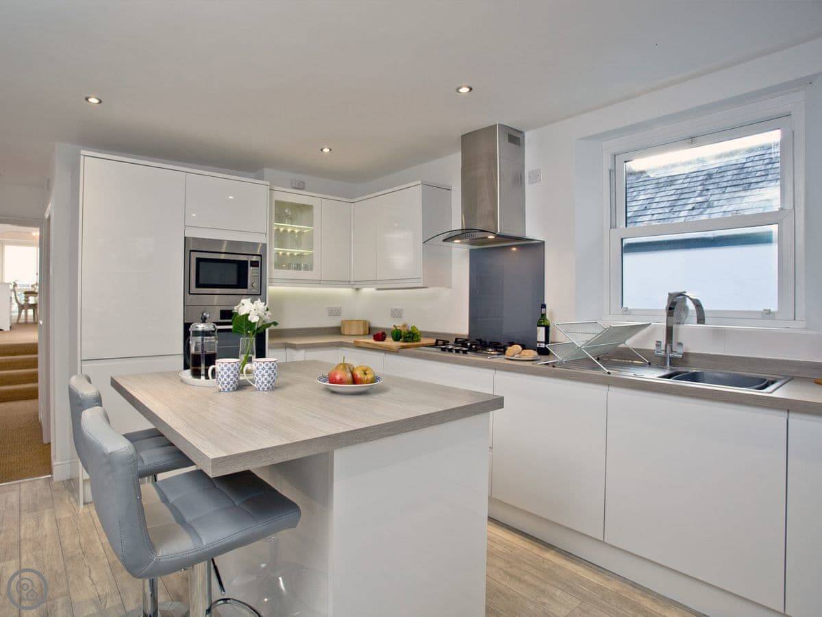 Being up here means you miss the worst of the traffic in the town centre. It's about a ten minute walk down to Readymoney beach, or twenty minutes to the main town shops. The walk back up is steep. There's a town bus that runs if you don't fancy it.