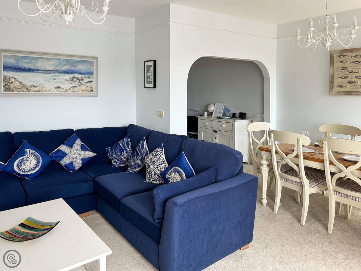 It sleeps six, in four bedrooms. There are two bathrooms. It's a 4 Star place, so it's comfortable and well kept. You can bring one dog.