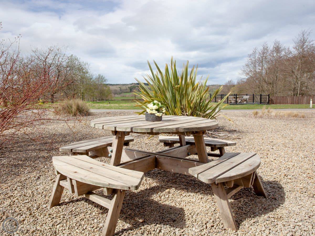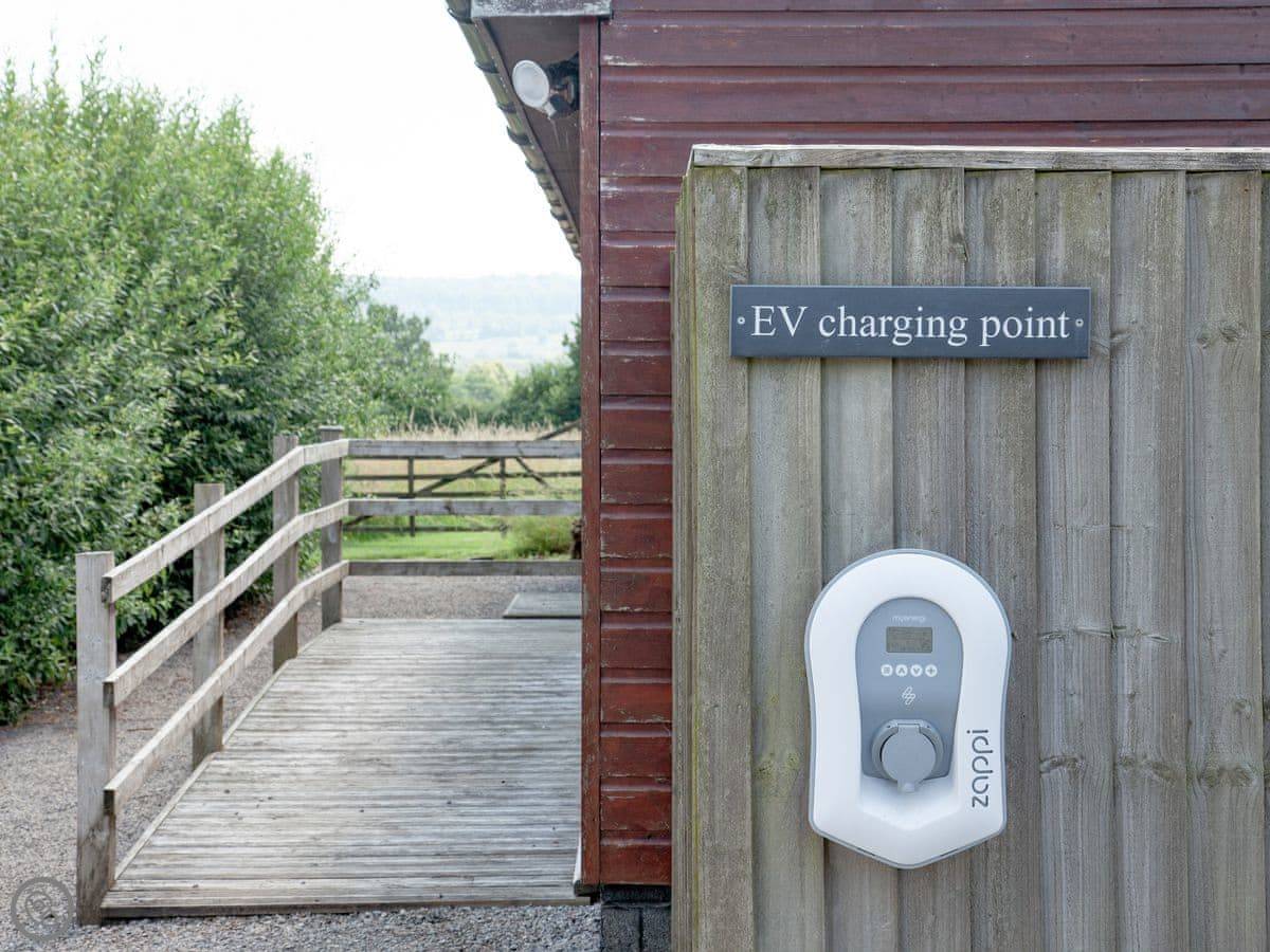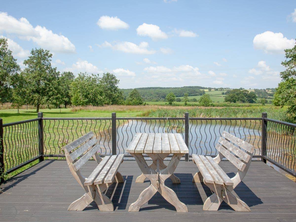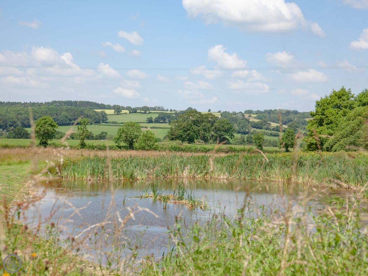 It sleeps six. Three bedrooms, two bathrooms. It's got a 5 Star rating, which means it's well-equipped and very clean. The gardens and views are the main thing here. You're on a 40-acre site with farmland, woods, and two lakes. You'll see deer and hares, and lots of birds like buzzards and owls. The carp in the lower lake are tame enough to feed by hand.