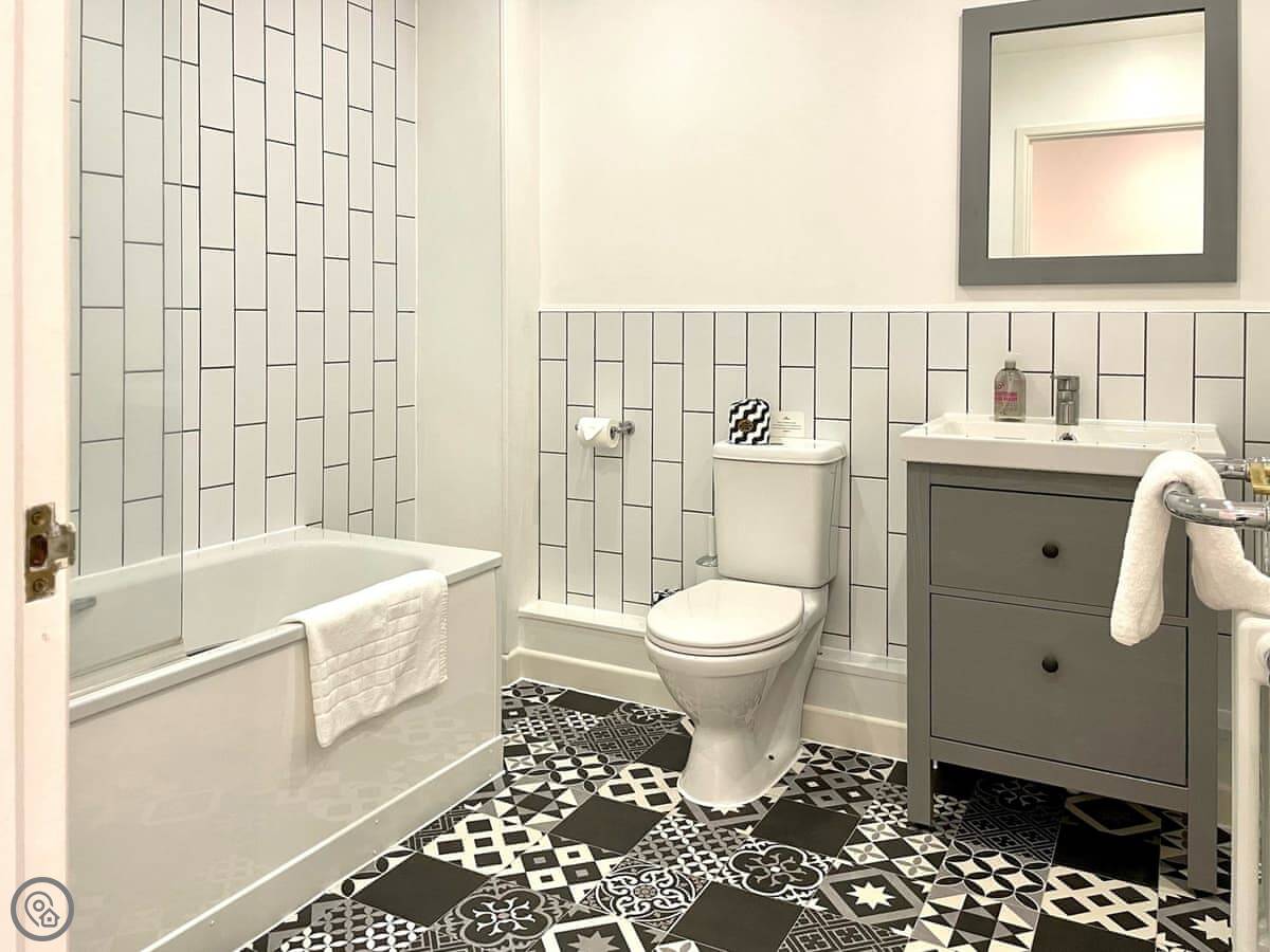 The place has been done up. It's a 5 Star, so that means it's all new inside, really clean and well-equipped. You won't be wanting for anything. There are five bedrooms and three bathrooms. One bedroom and a bathroom are on the ground floor, which is useful.