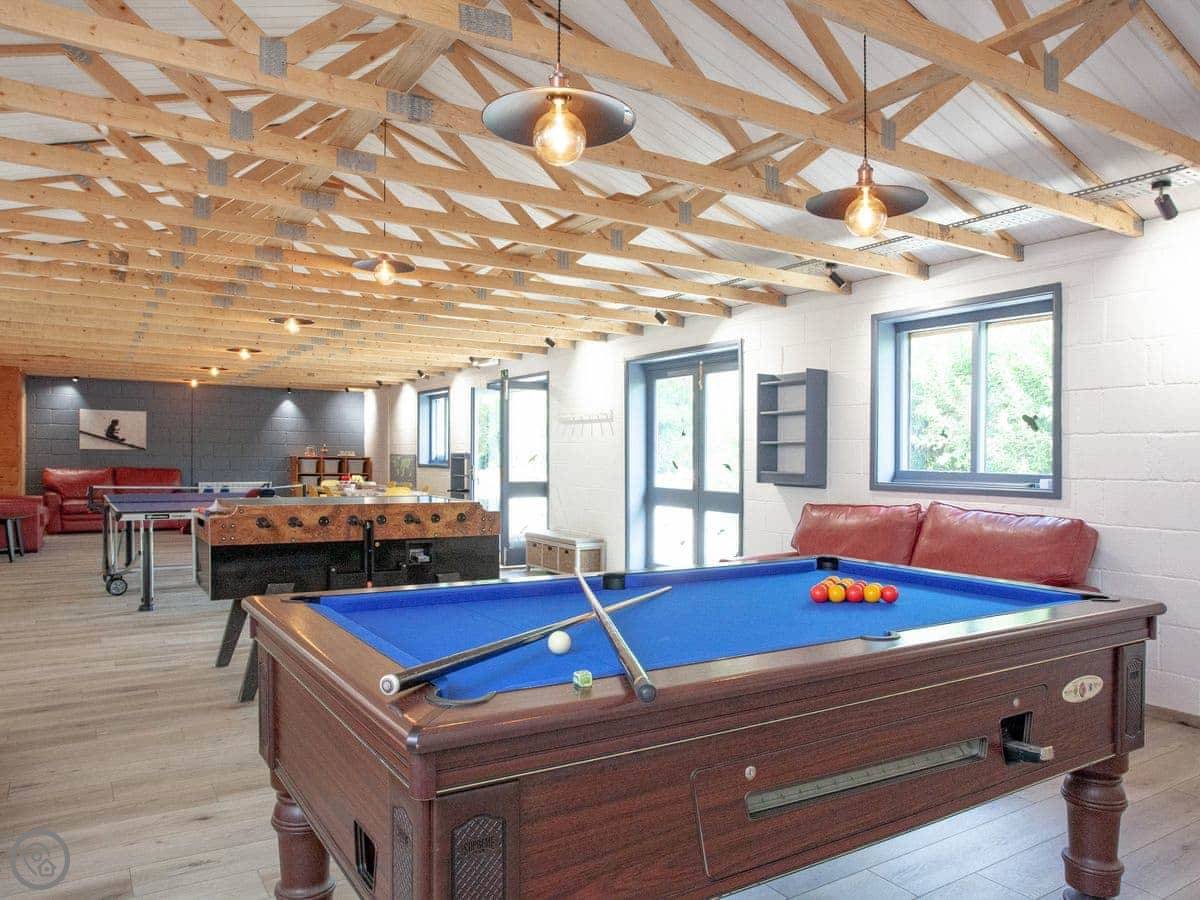 On site, there's an indoor swimming pool, a games room, a tennis court, and a climbing frame for kids. There's parking and an electric vehicle charger. You've got a garden area with a barbecue. Inside, there's a washing machine, dishwasher, WiFi, and a cot and highchair if you need them. All bedding and towels are included.