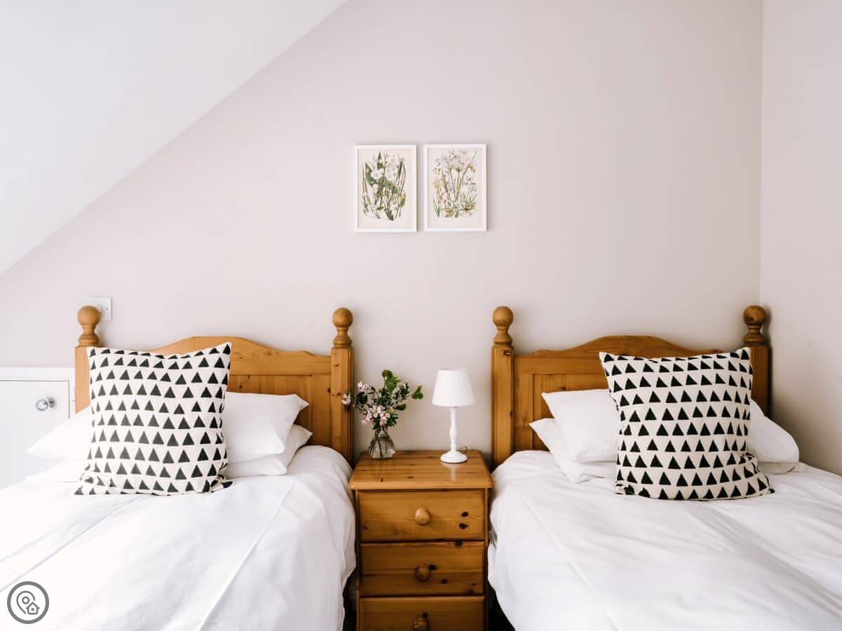 It sleeps six. Three bedrooms, two bathrooms. Two well-behaved pets are welcome.