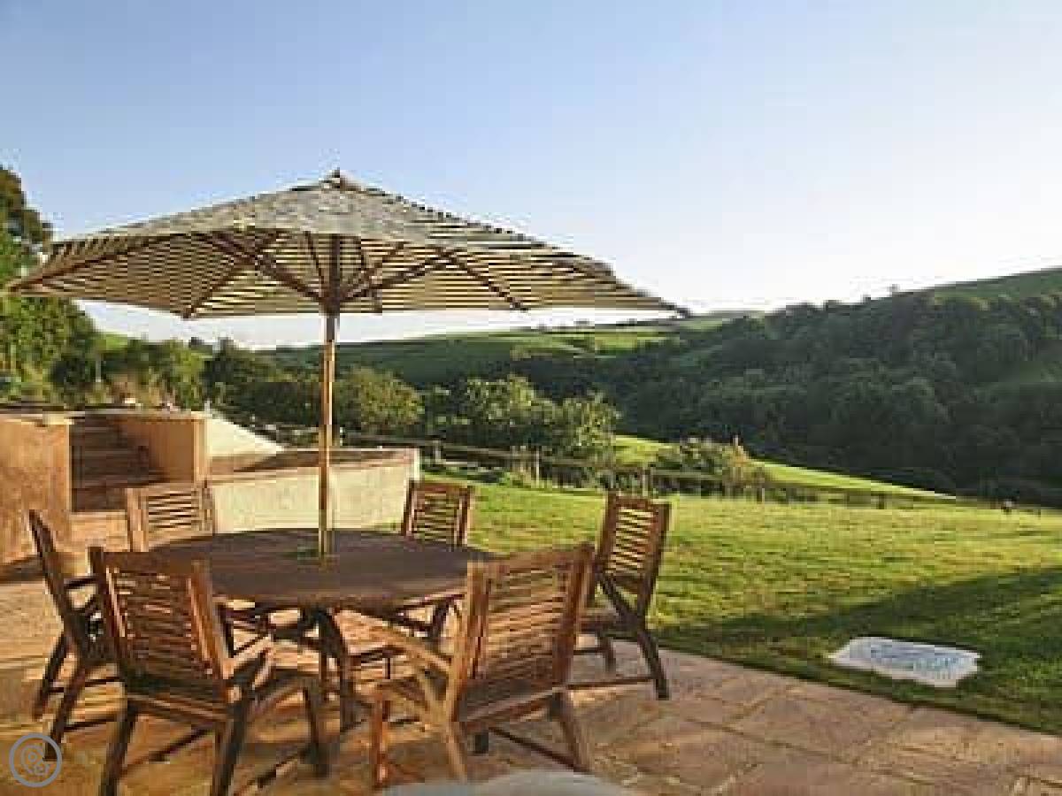 Well Cottage is in Timberscombe, just inside the border of Exmoor. It's detached and quiet. The garden is enclosed, which is handy if you've got dogs or children. It's got a patio with a table and chairs. The view from there is across the valley, it's very nice.