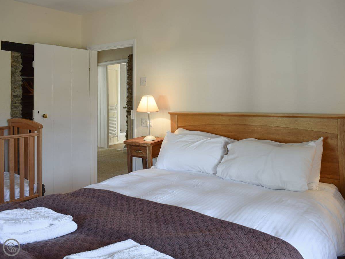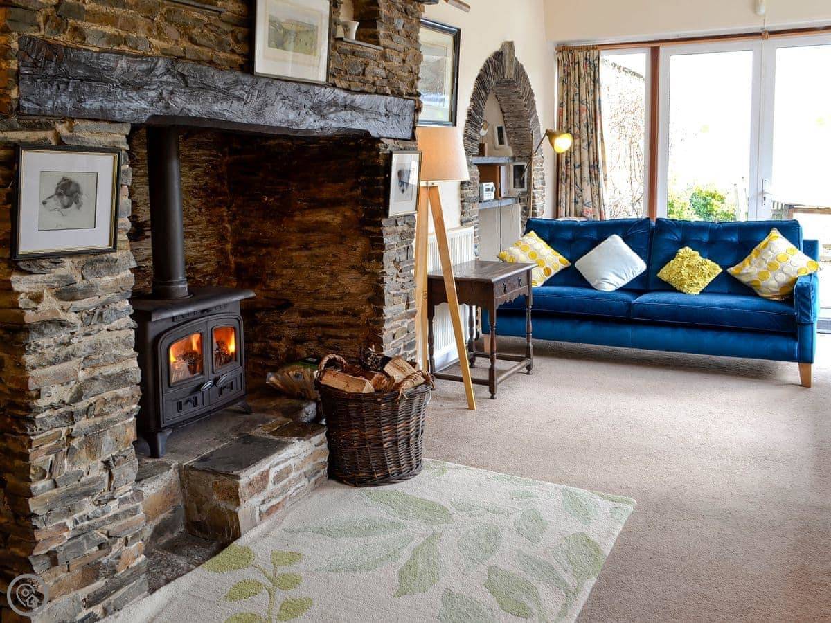 What's here: underfloor heating and a wood burner for colder days, dishwasher, washing machine, WiFi, TV. Beds are made up for you, and towels are included. There's parking right here. You can bring two dogs. There's a cot and a highchair if you need them.
