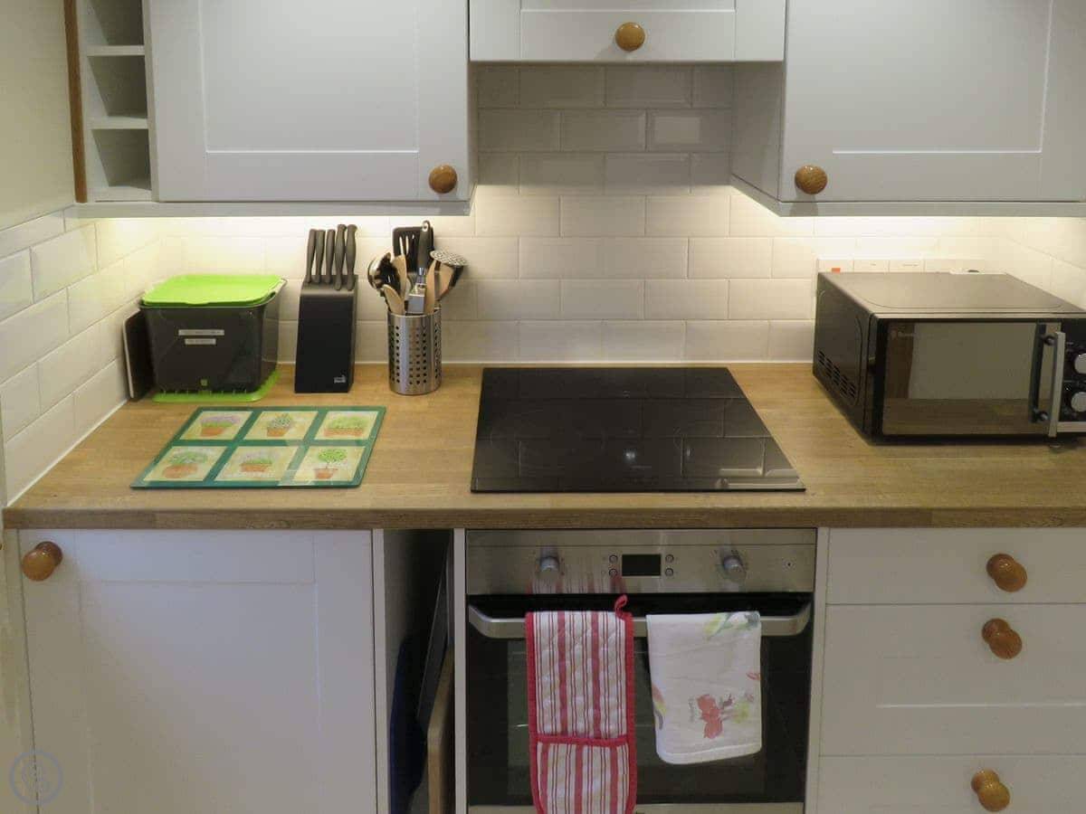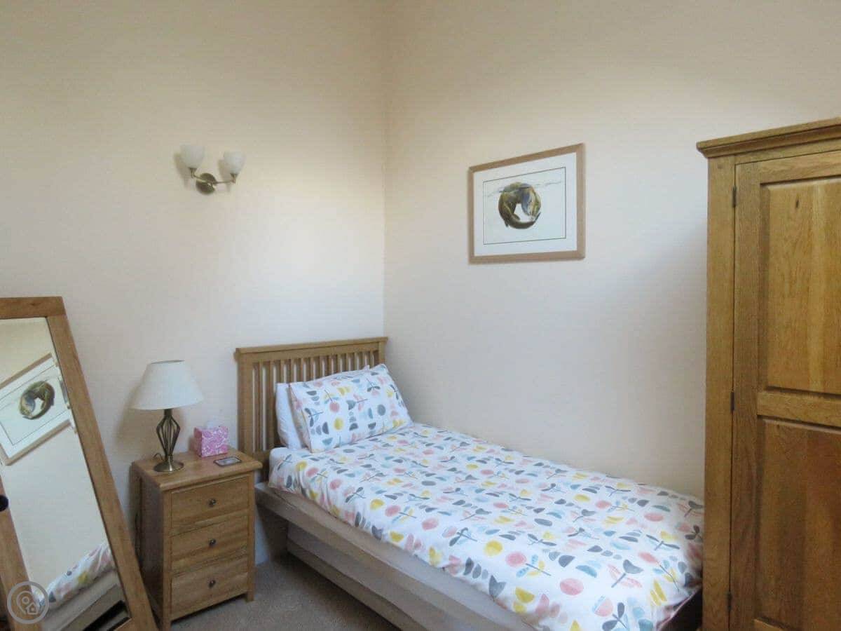 It sleeps three. Two bedrooms, both with their own bathrooms. One is en-suite. It's a 4 Star place, so it's comfortable. Oak doors, underfloor heating on the ground floor, that sort of thing.