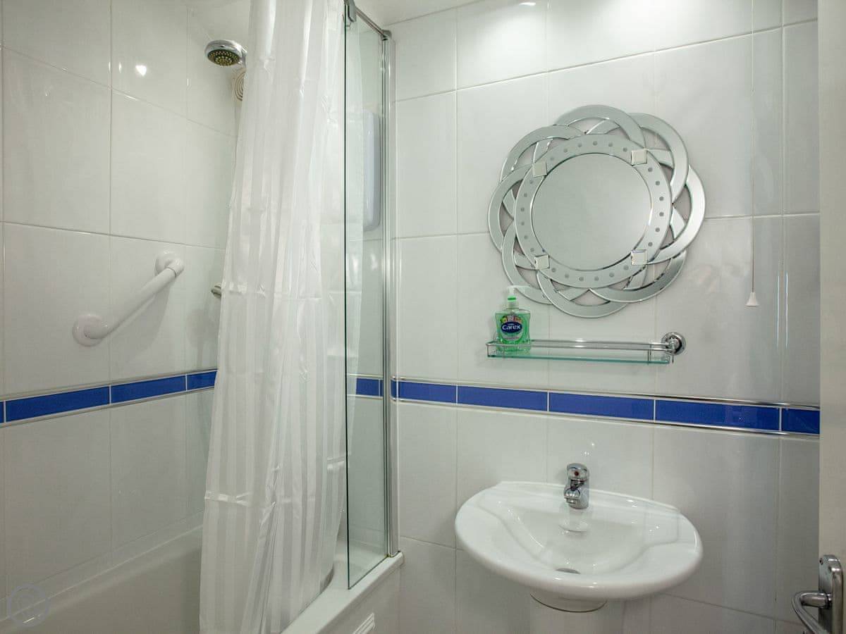 Outside, you've got a small patio area with a BBQ. On site, there's parking. There's also a shared games room, an indoor play area for kids, and both indoor and outdoor swimming pools you can use. There's a sauna and steam room too.