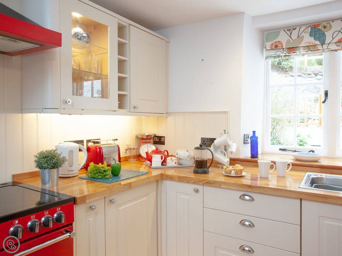 This is 3 Salle Cottage. It's in Tuckenhay, which is up a quiet creek off the River Dart. It's part of a converted paper mill.