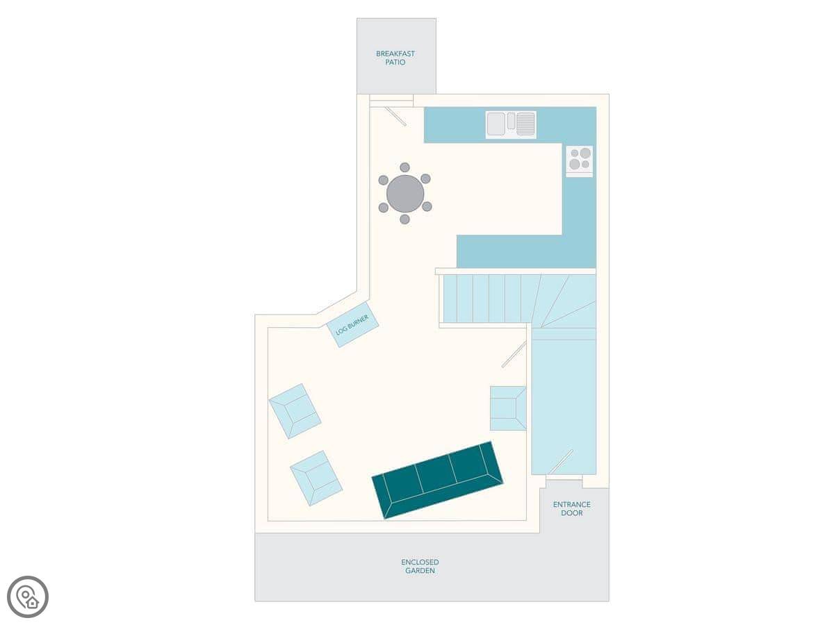 You have your own garden. The main living area is upstairs, with big windows and a balcony that looks out over the stream towards the old mill. The master bedroom is downstairs.