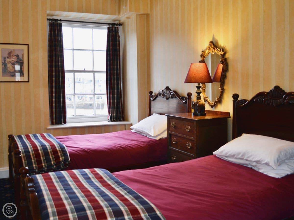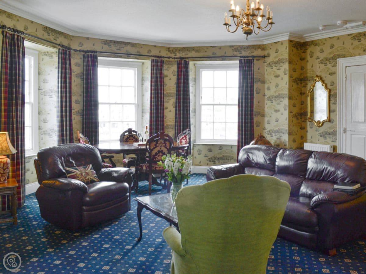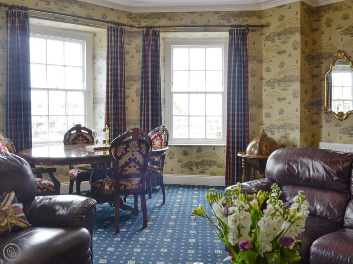 This is Nelson. It's a third floor apartment in a building called The Admiral's House, in Ilfracombe. You're right on the harbour edge. The view from the main room is of the harbour and the beach.